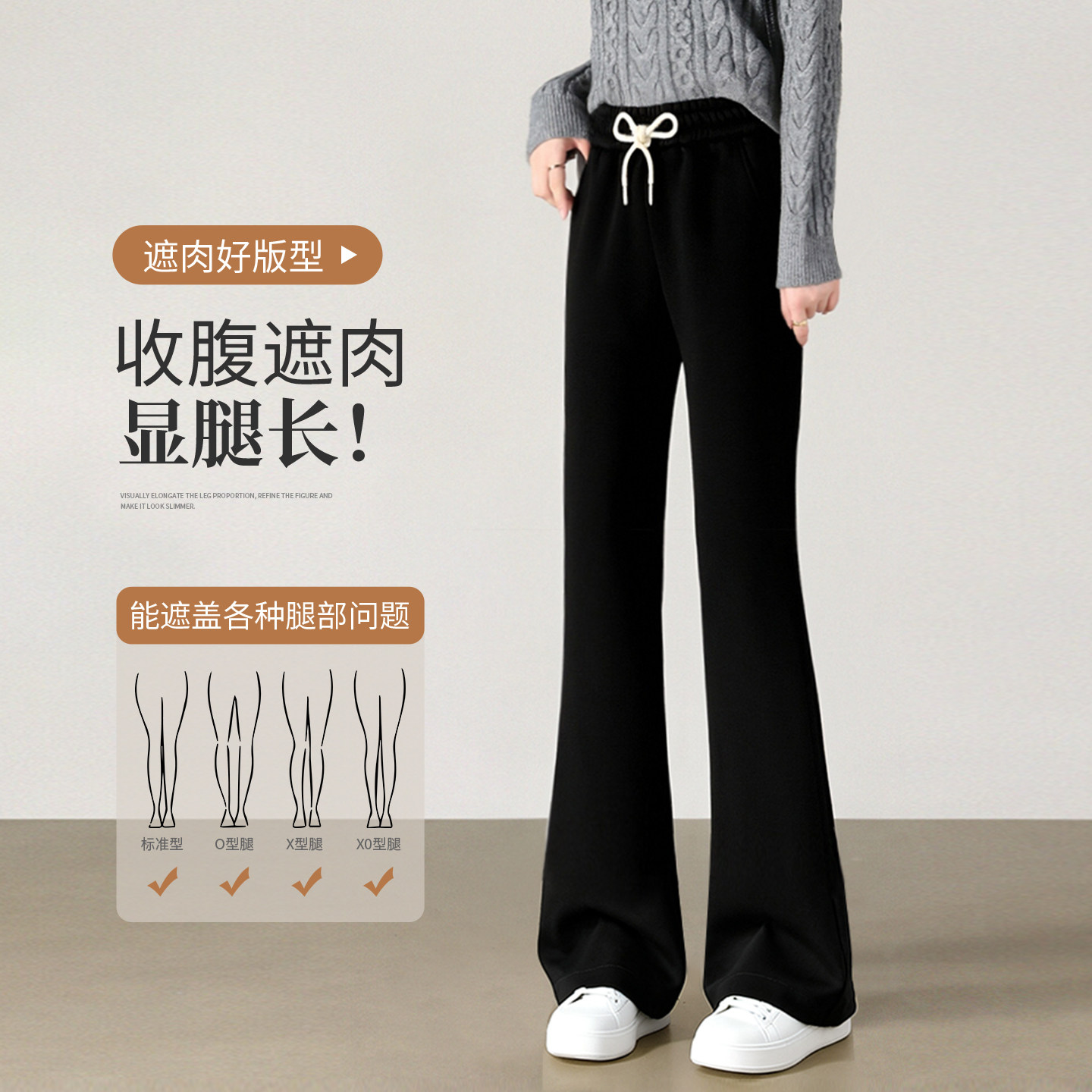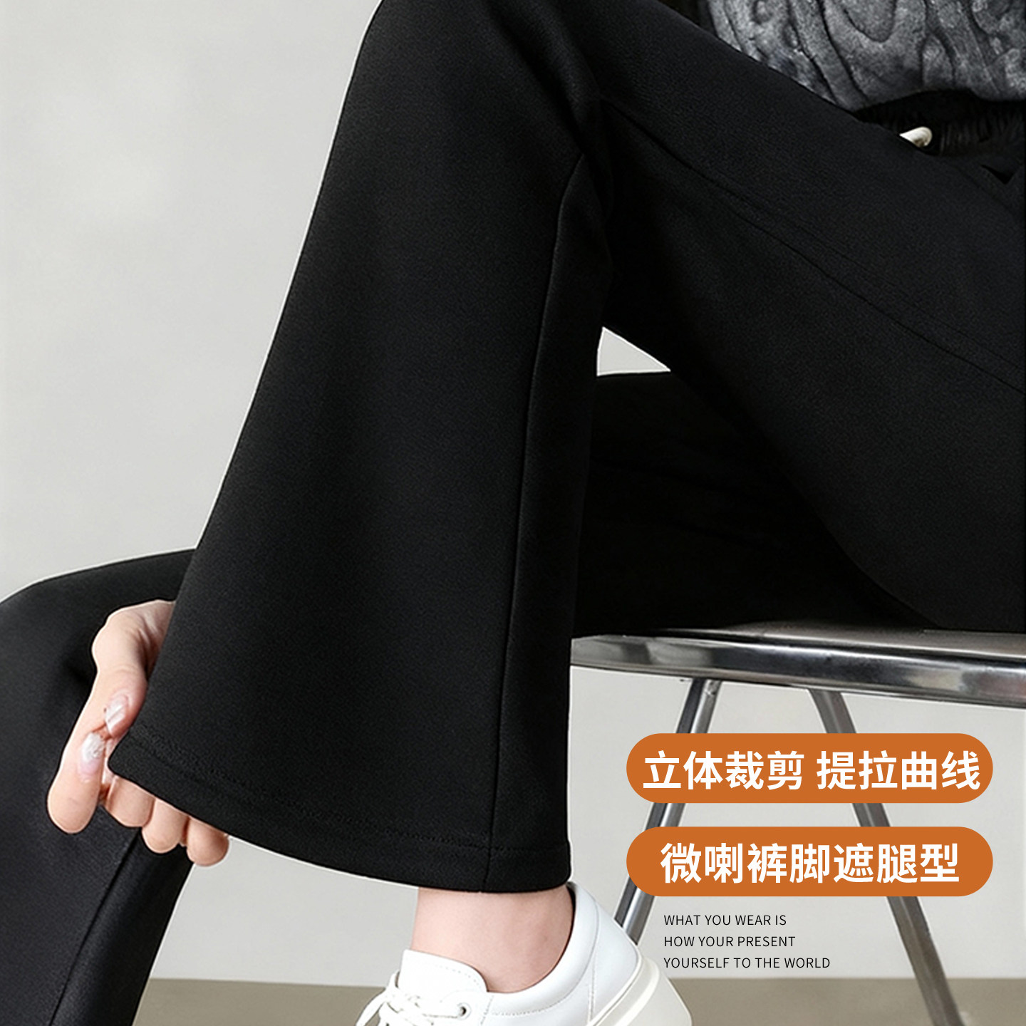 2025秋冬新款羊毛加绒加厚微喇裤女高腰垂感直筒显瘦显腿长喇叭裤