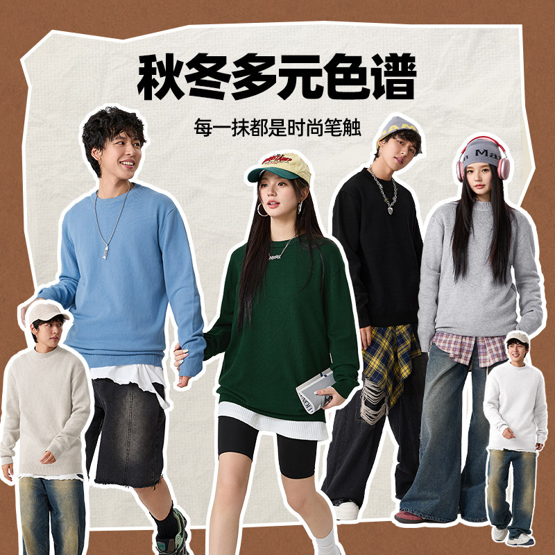 2025秋冬新款圆领情侣长袖毛衣打底衫