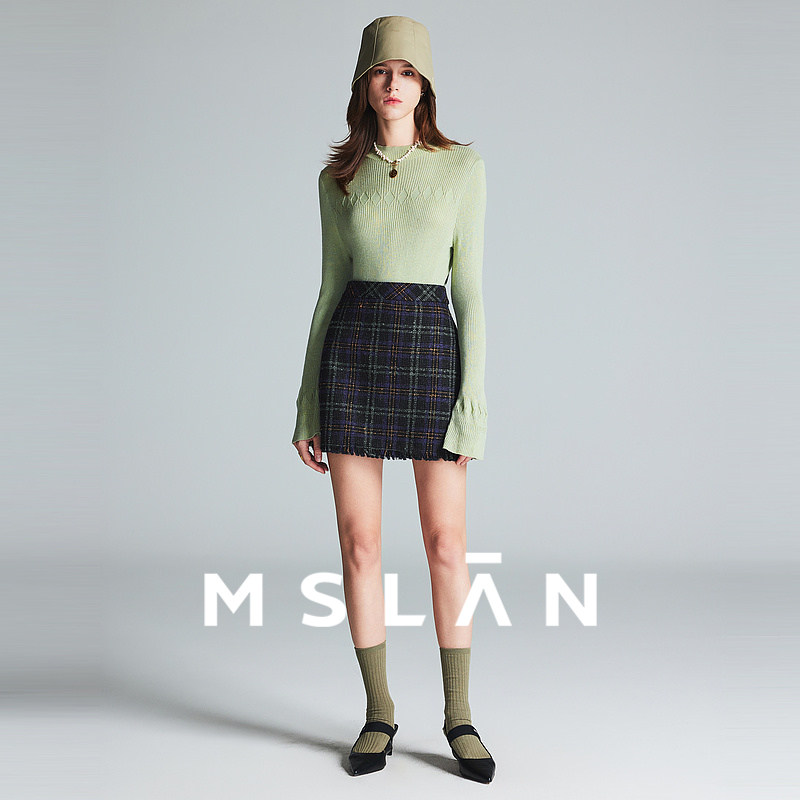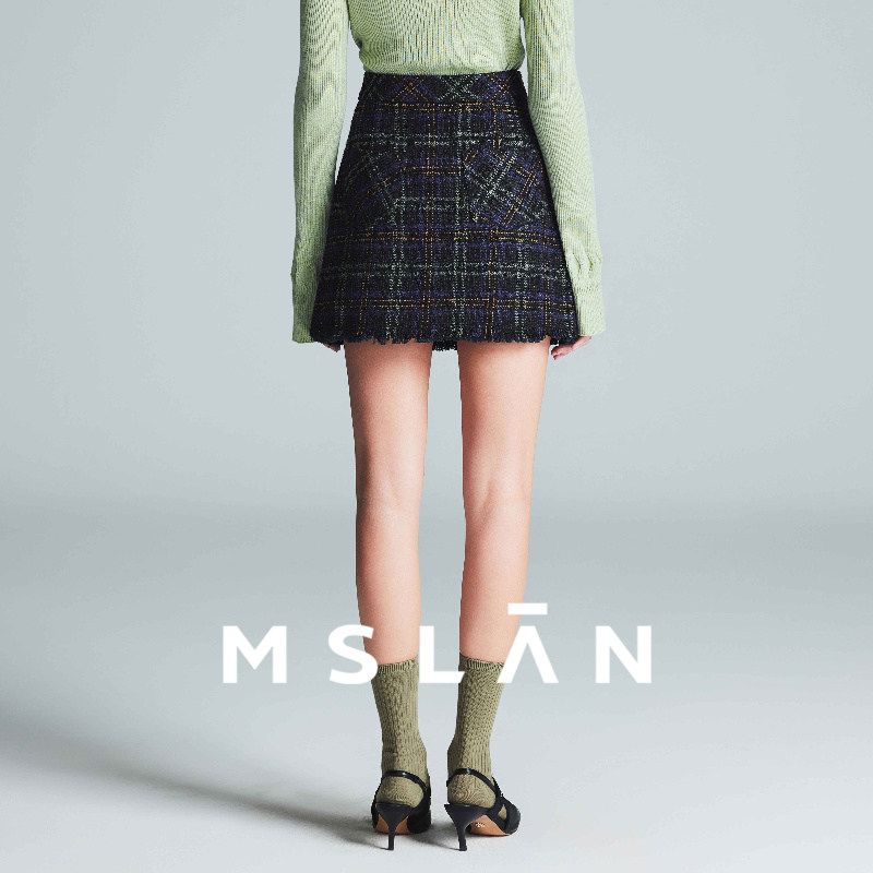 苏格兰学院|MSLAN商场同款26春新格子粗花呢流苏短裙MFDQ070