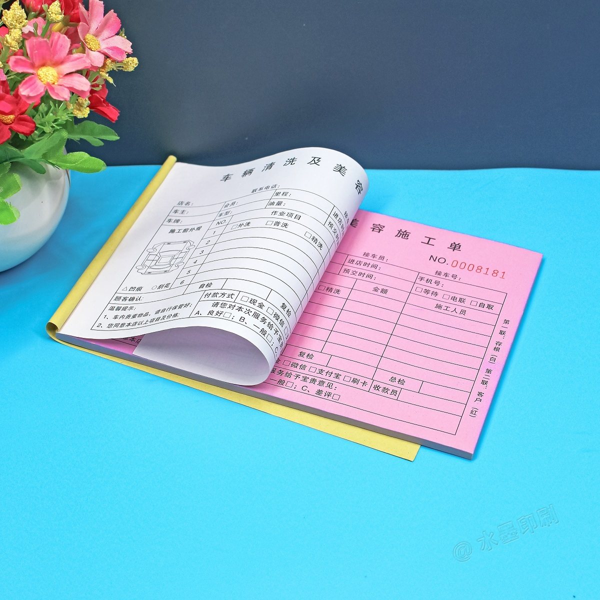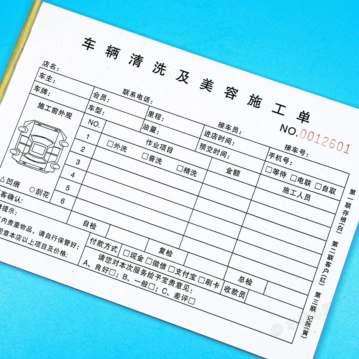 汽车美容施工单装潢派工单二三联洗车店车辆清洗接车单洗车单定制