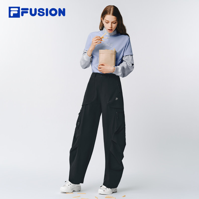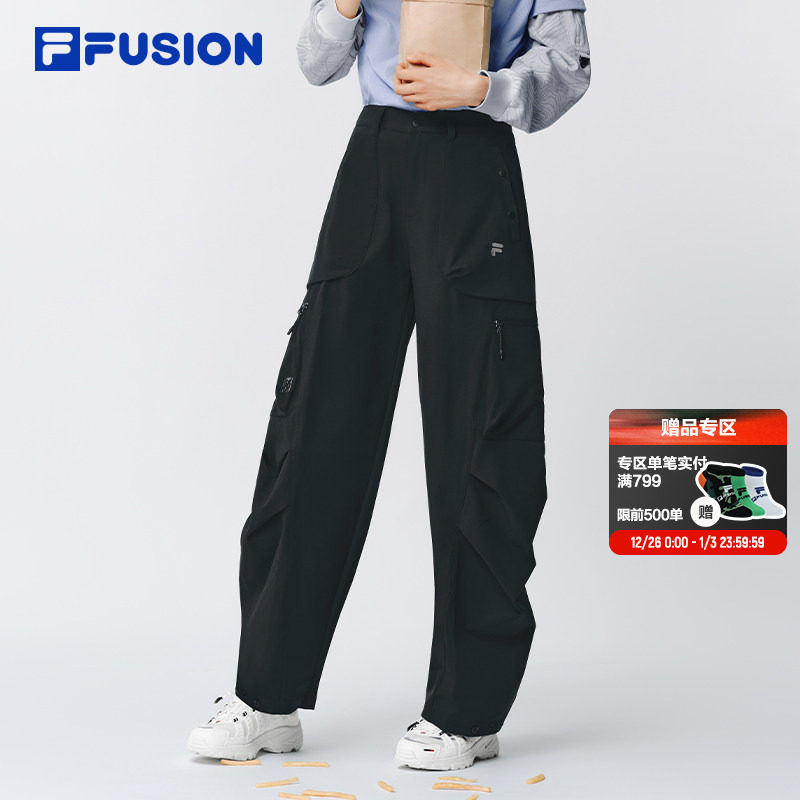 FILA FUSION斐乐潮牌梭织长裤女2025冬季新款时尚休闲宽松工装裤