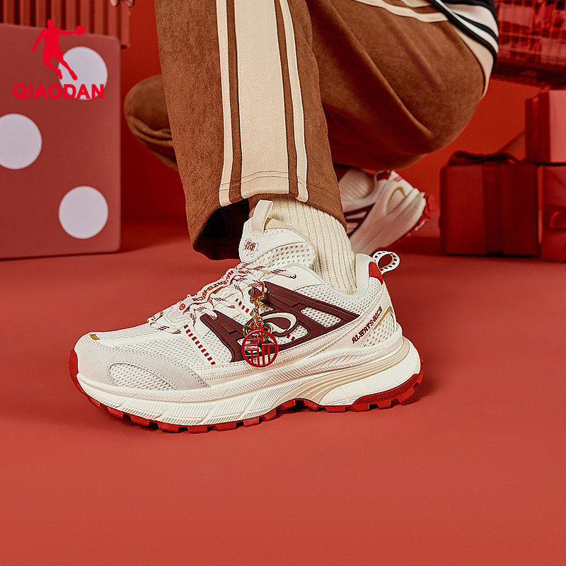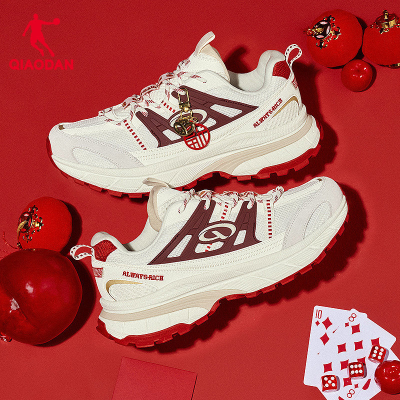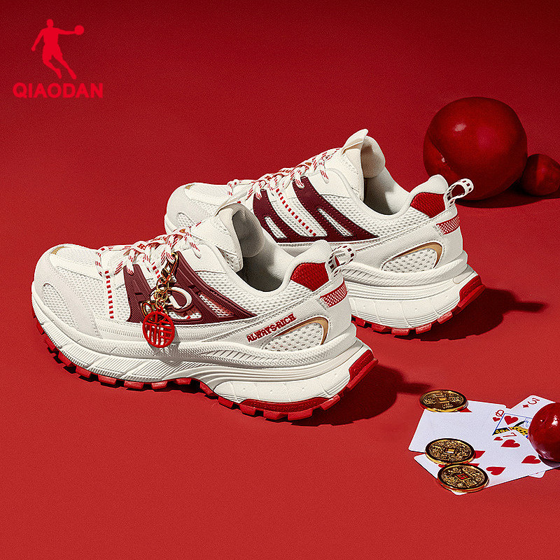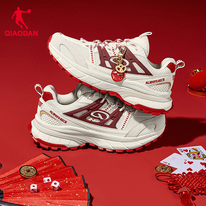 开元V3乔丹休闲鞋男2026新年红色厚网增高软底休闲鞋情侣鞋新年红