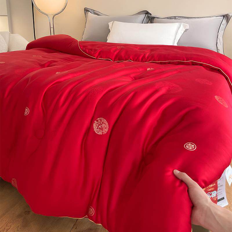 新款大红色结婚陪嫁婚庆喜被天丝棉大豆被子四季通用蚕丝被冬被芯