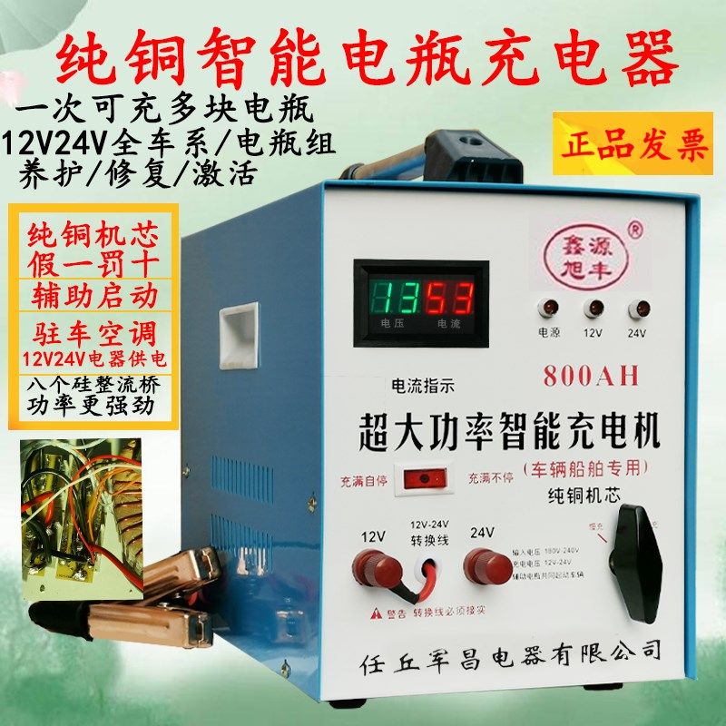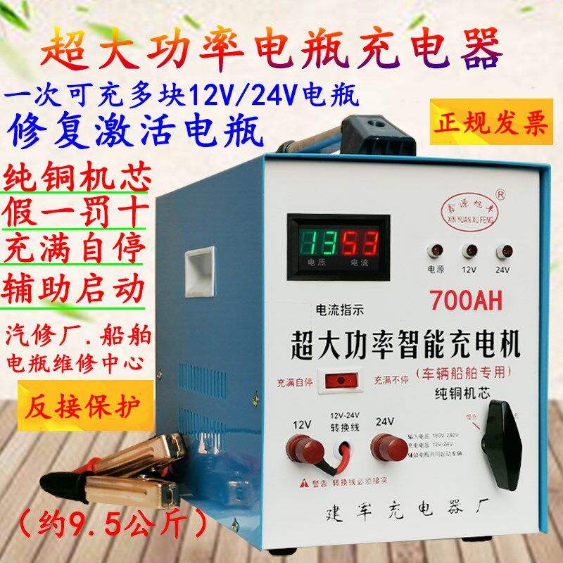 汽车电瓶充电器12V24V大功率修复纯铜智能充满自停快速启动充电机