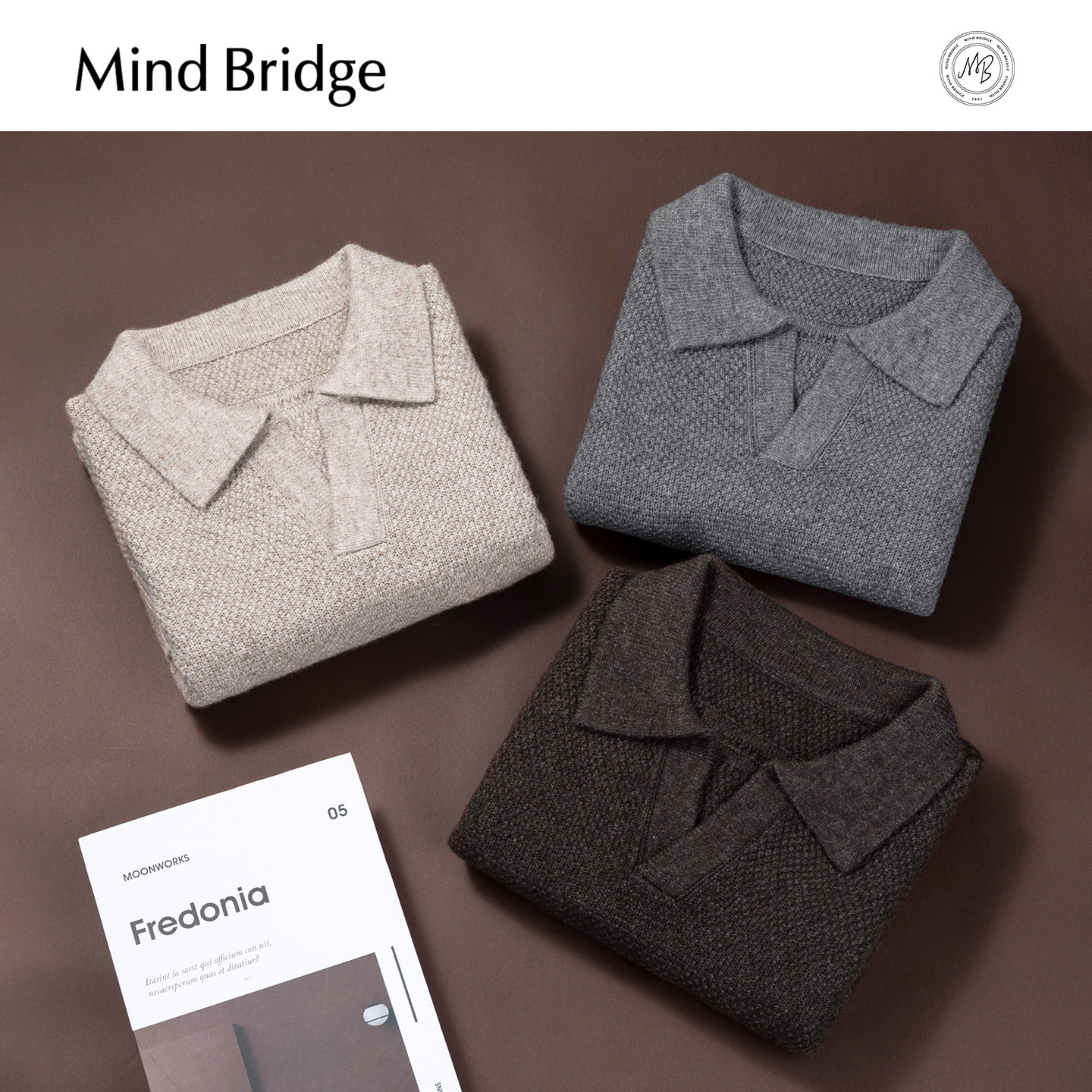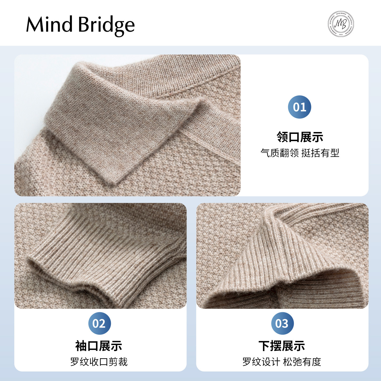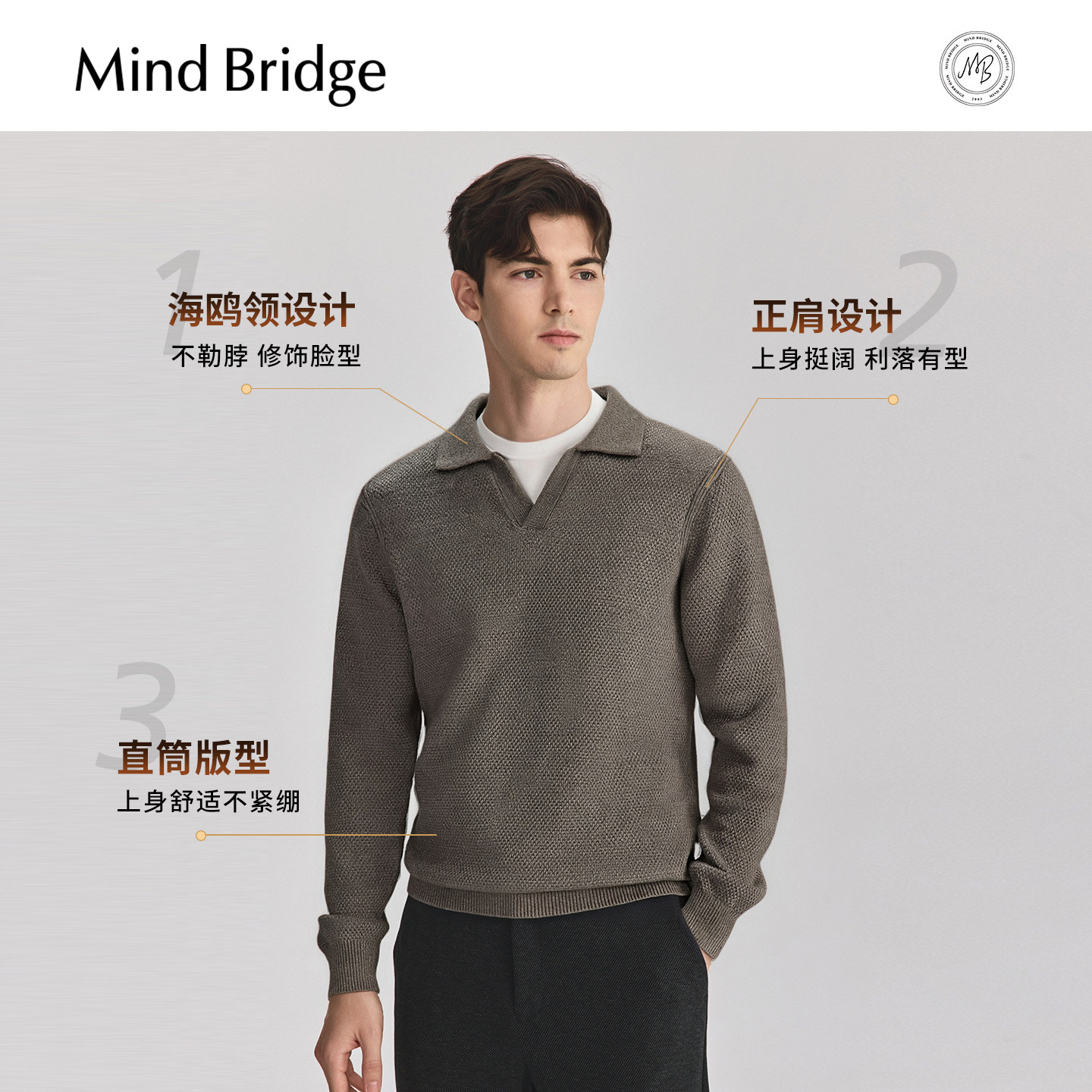 Mind Bridge【绵羊毛】2025年秋复古休闲针织男士纯色海鸥领毛衣