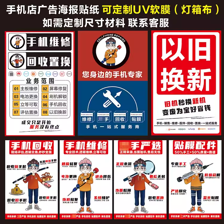 手机维修店广告宣传海报贴纸 配件广告贴 手机柜台贴纸门贴广告贴