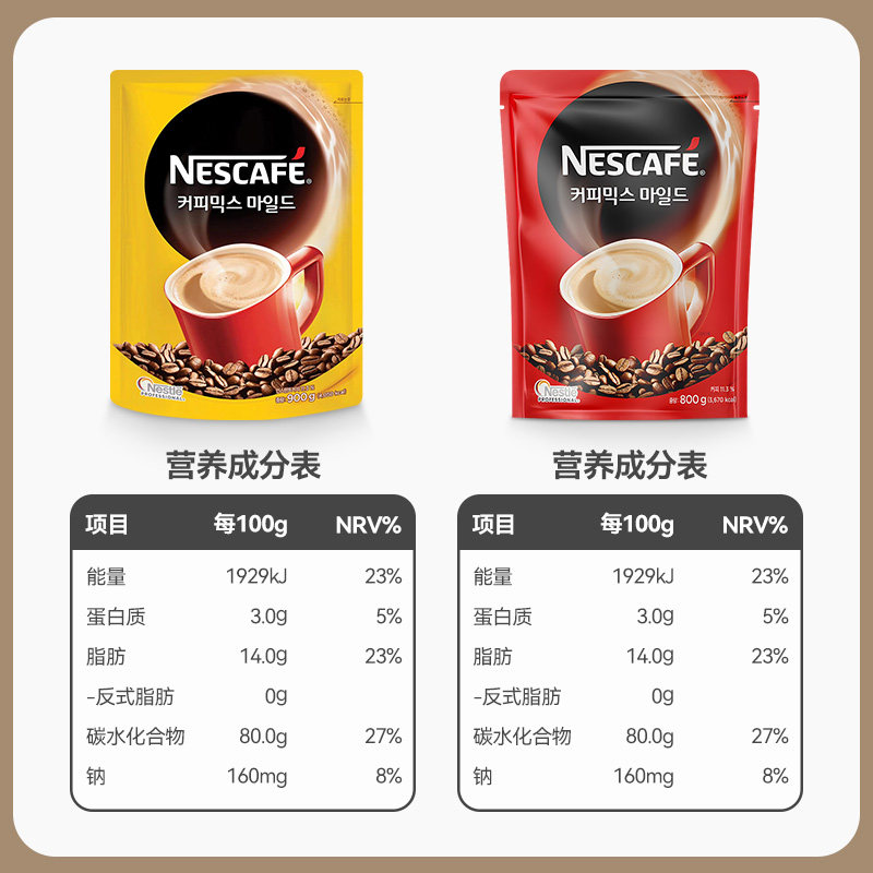 韩国进口雀巢混合原味三合一速溶咖啡粉900g/800g学生熬夜党提神