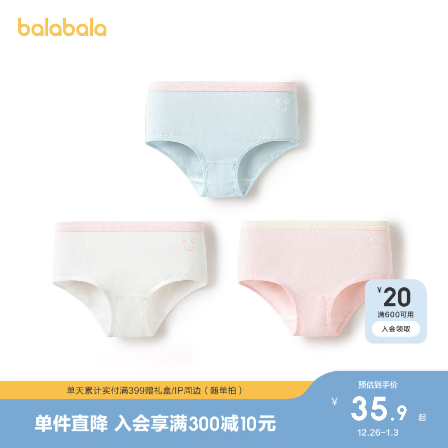 【balaOne】巴拉巴拉儿童内裤棉a类男童平角短裤女大童四角三条装