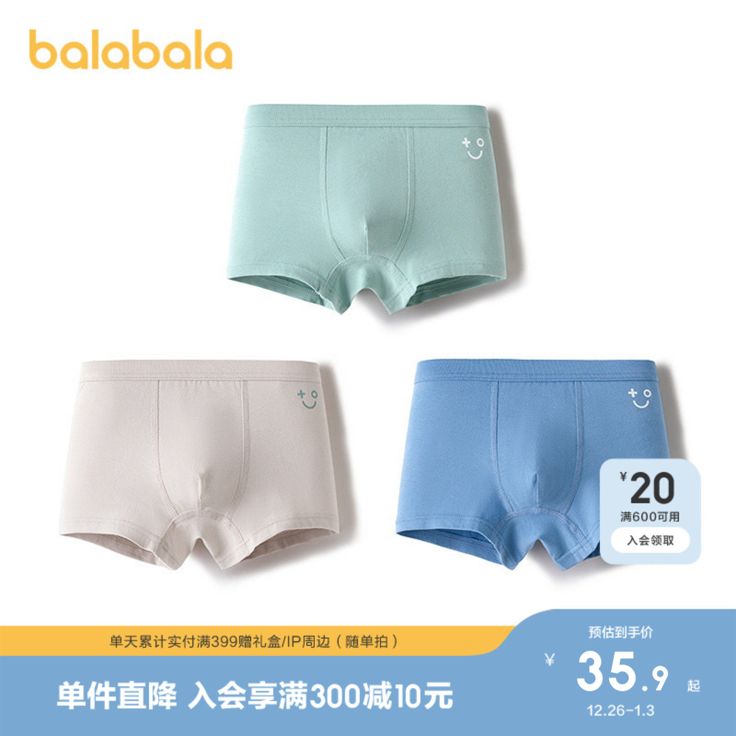 【balaOne】巴拉巴拉儿童内裤棉男童不夹pp抗菌裆四角短裤三条装