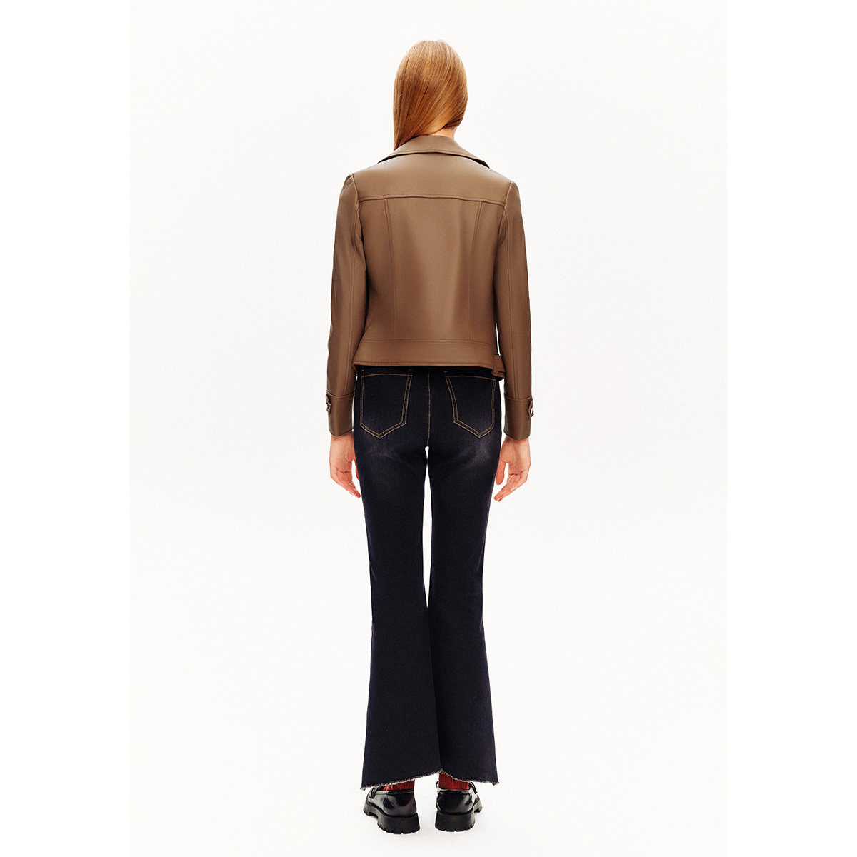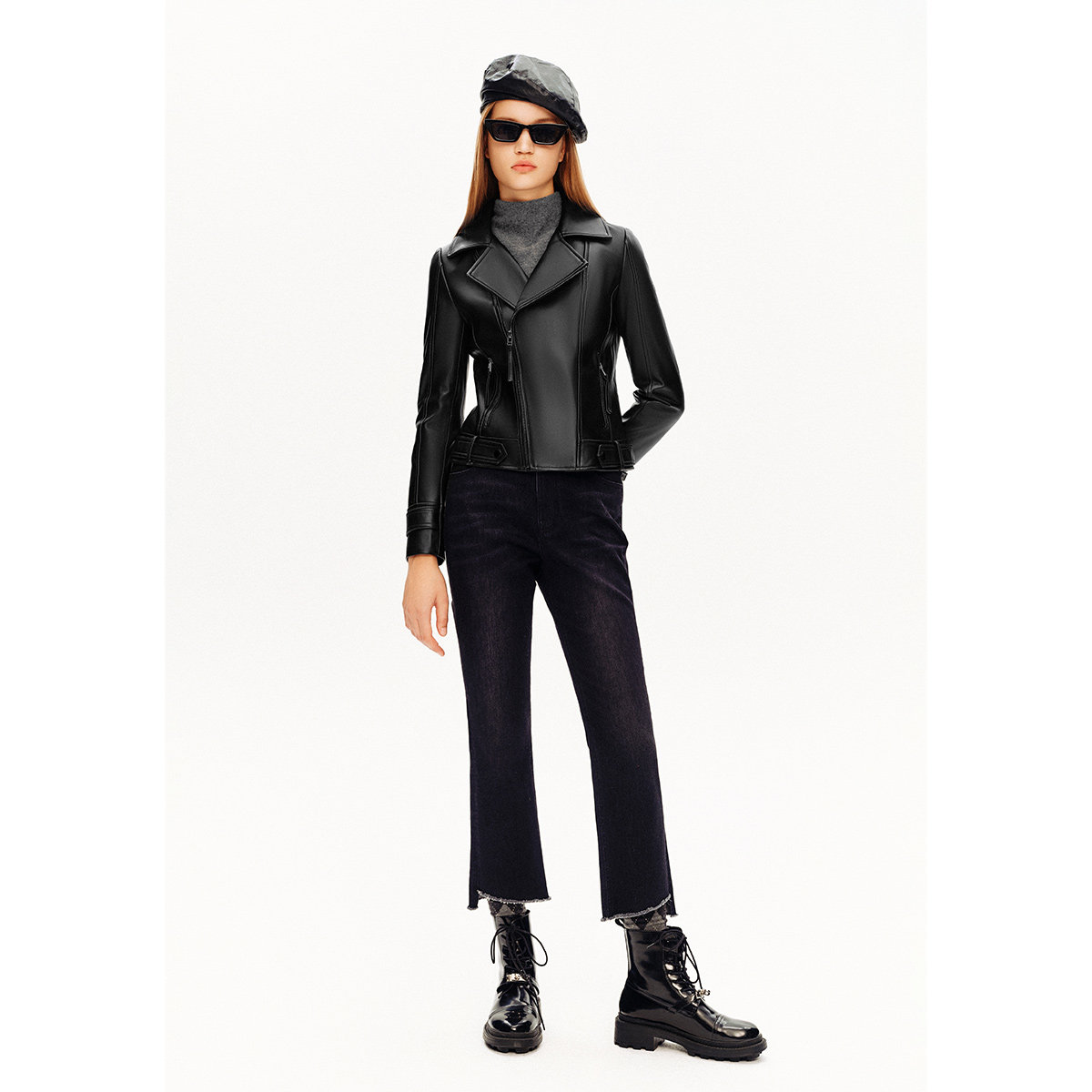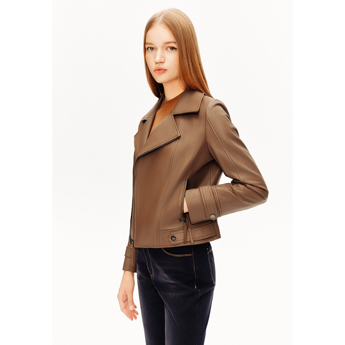 Eland衣恋皮衣女纯色带拉链长袖翻领外套2025冬季新款