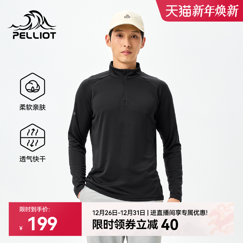 伯希和户外速干T恤男秋冬新款运动长袖休闲上衣翻领POLO打底衫