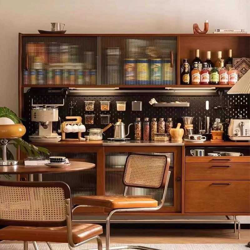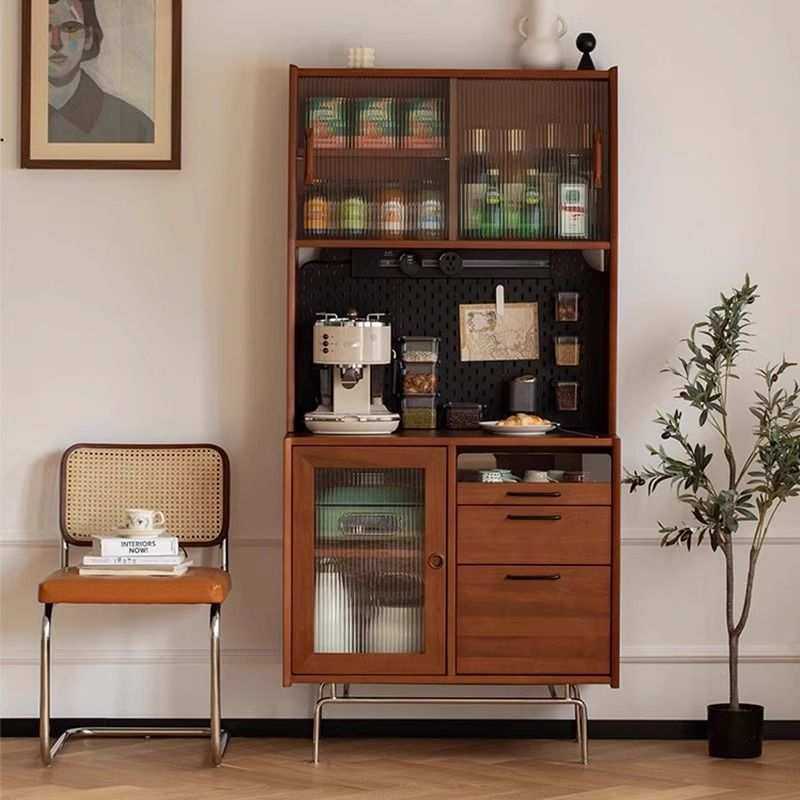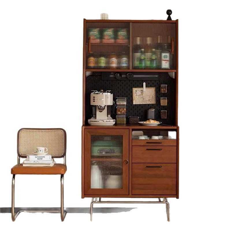 北欧实木餐边柜复古洞洞板收纳储物柜家用日式一体靠墙酒柜茶水柜