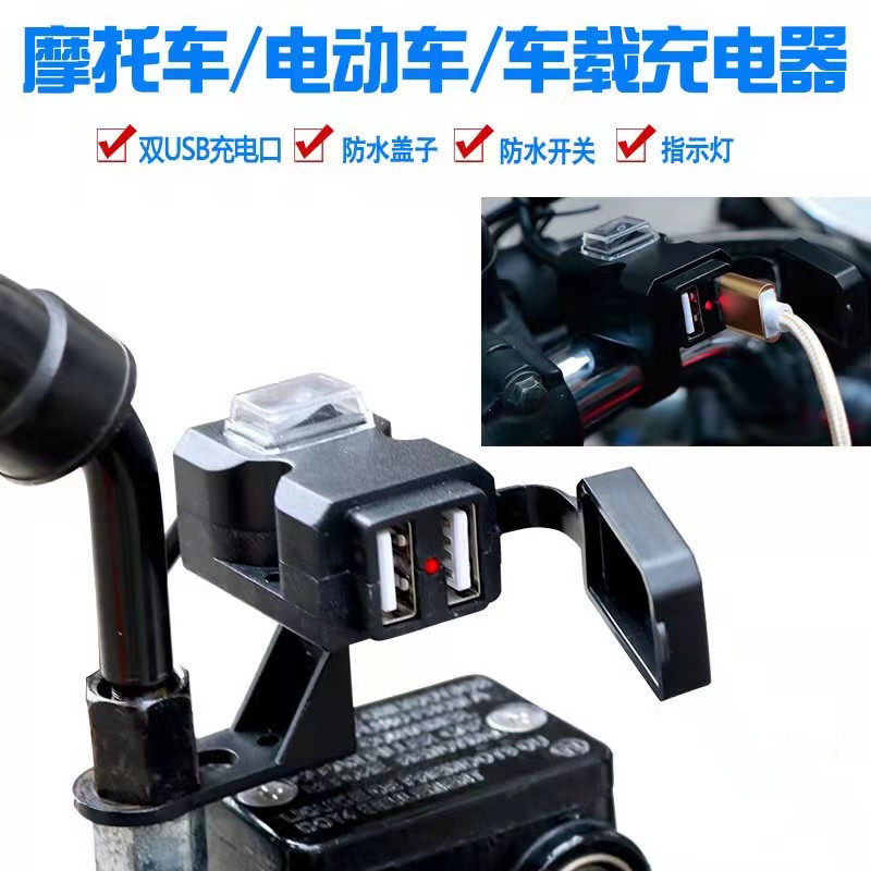 电动摩托车手机充电器改装12v24v72v蓄电池转5vUSB接口防水快充