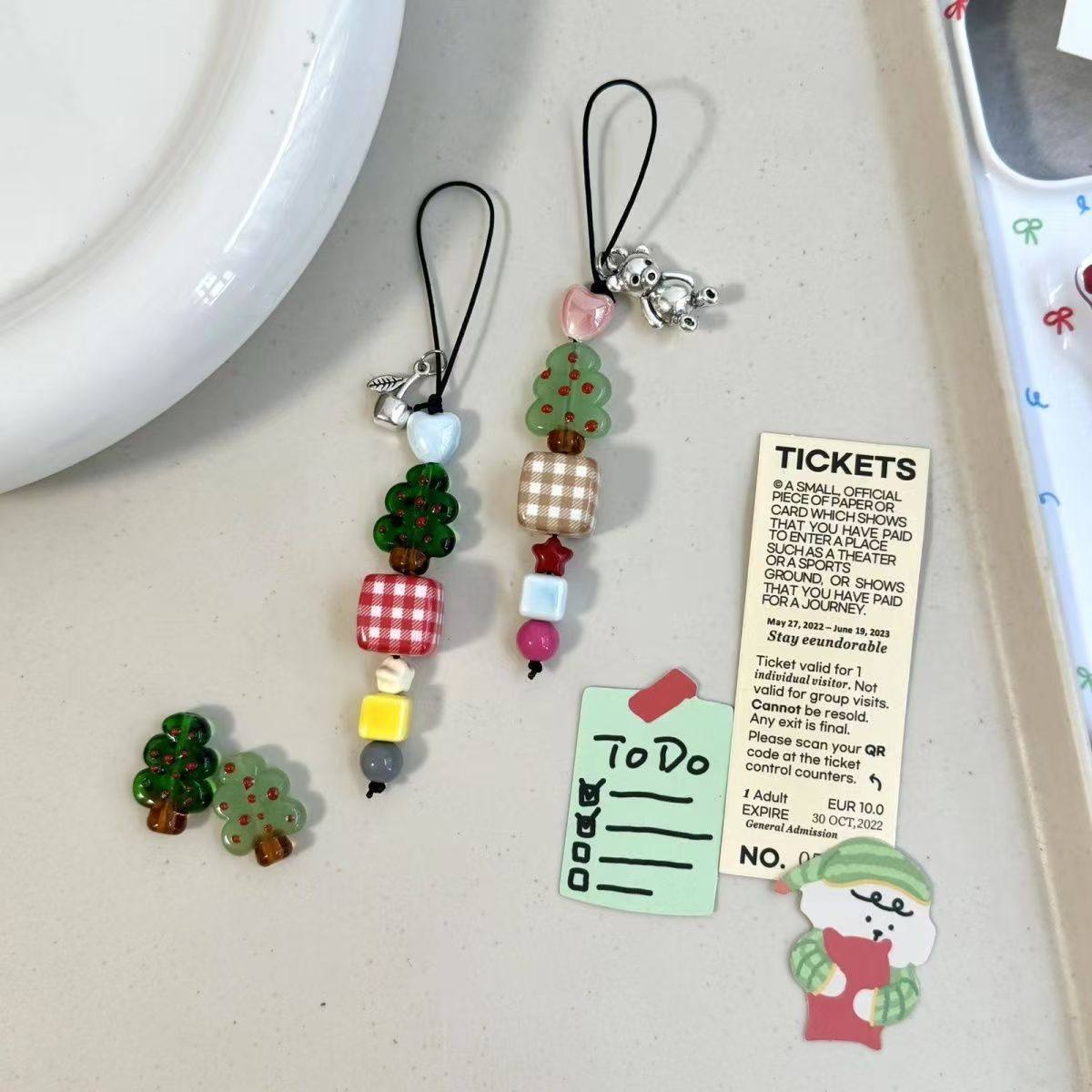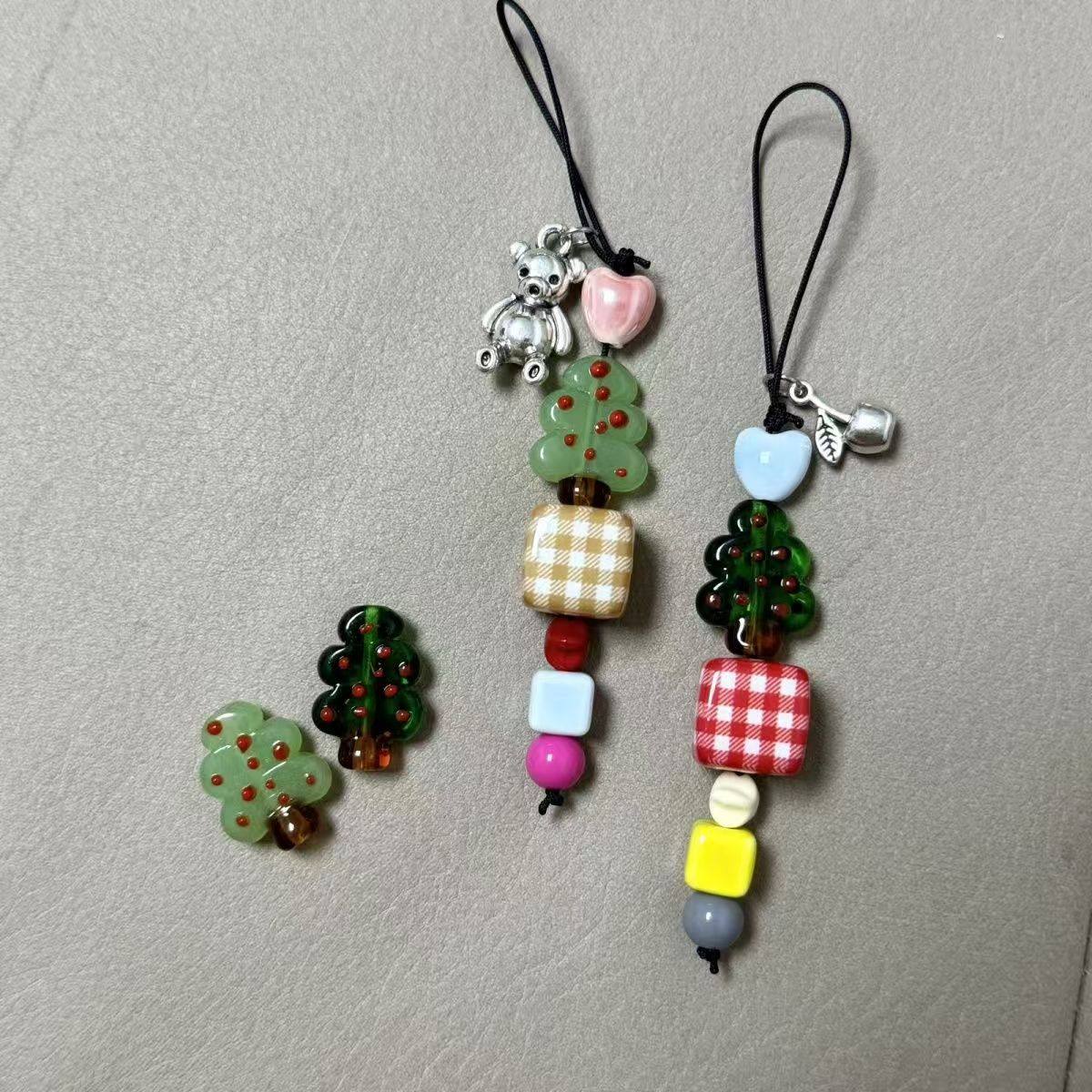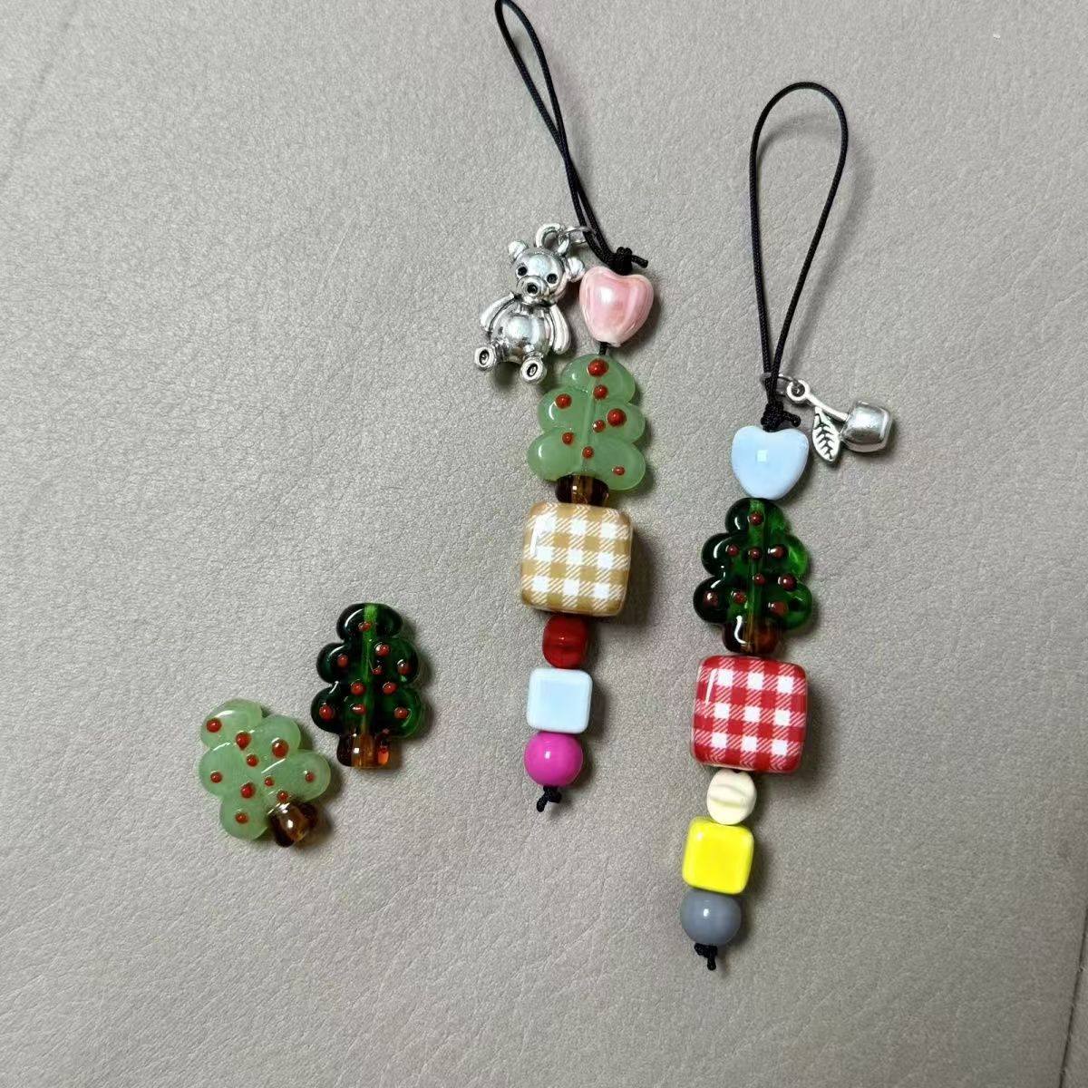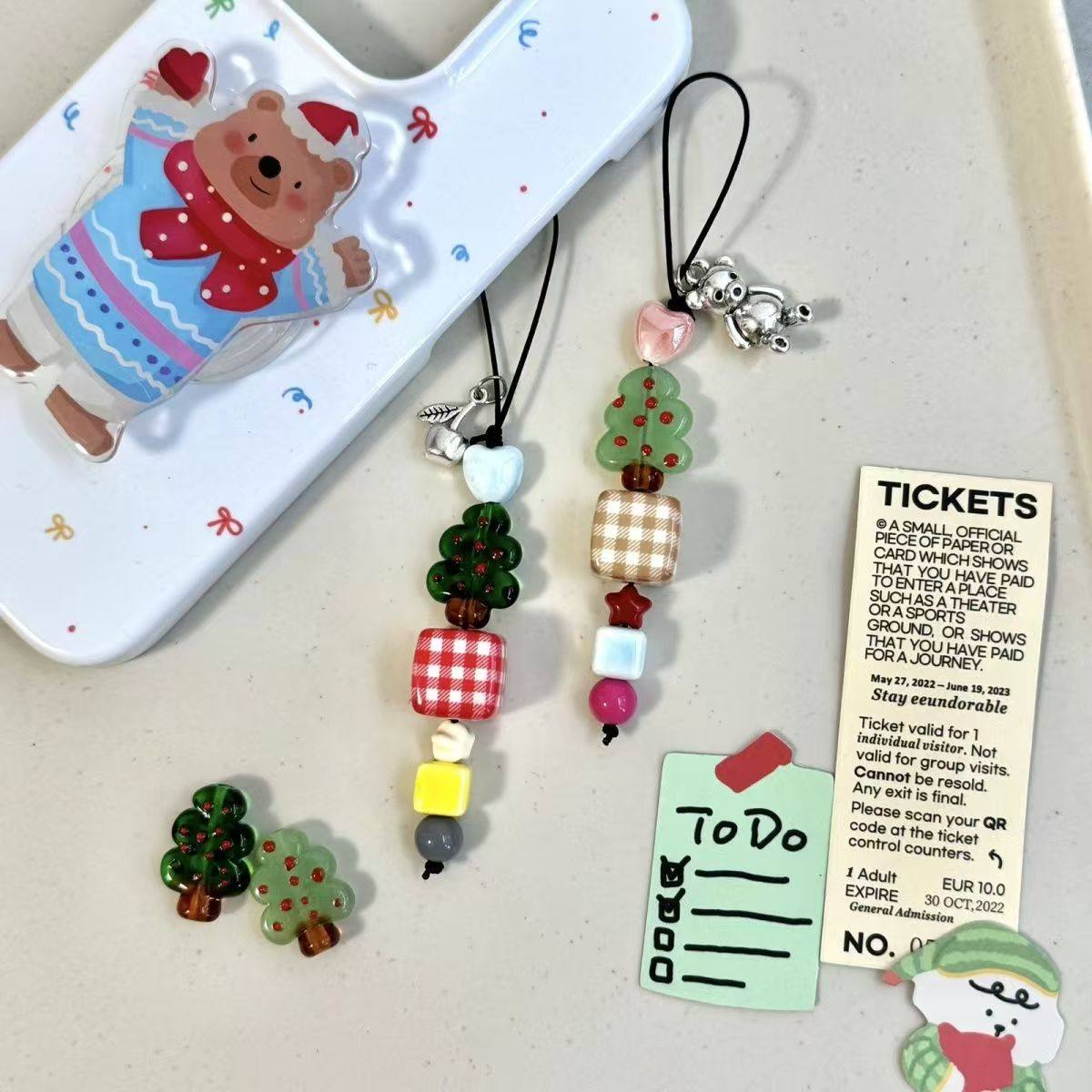 原创小众童趣手作琉璃圣诞树小熊串珠手机链短链挂件小众闺蜜礼品