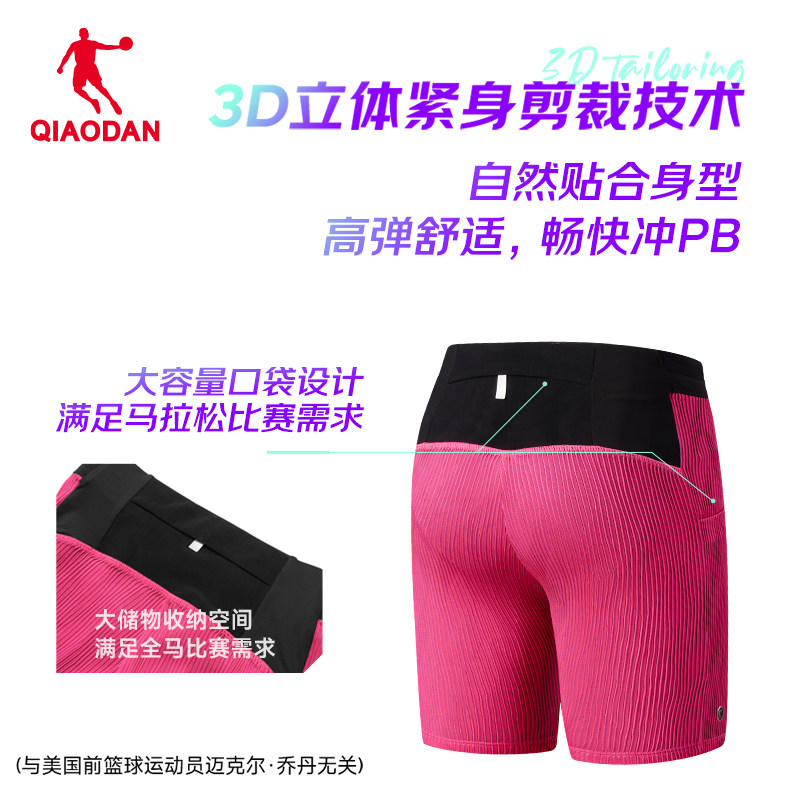 乔丹带腰包女生马拉松半弹短裤飞影跑步裤2025夏季新款透气紧身