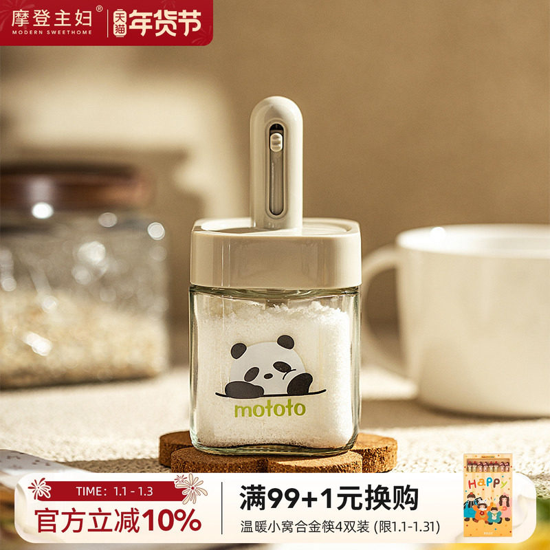 摩登主妇mototo熊猫伸缩调料罐厨房勺盖一体盐罐调味瓶罐套装组合