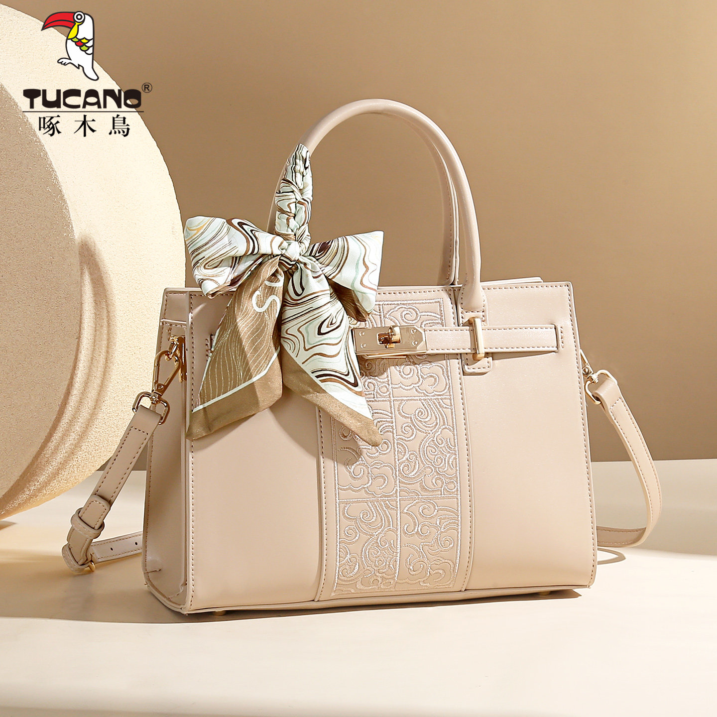 啄木鸟真皮女士包包2025新款秋冬高级感中老年单肩斜挎手提包通勤