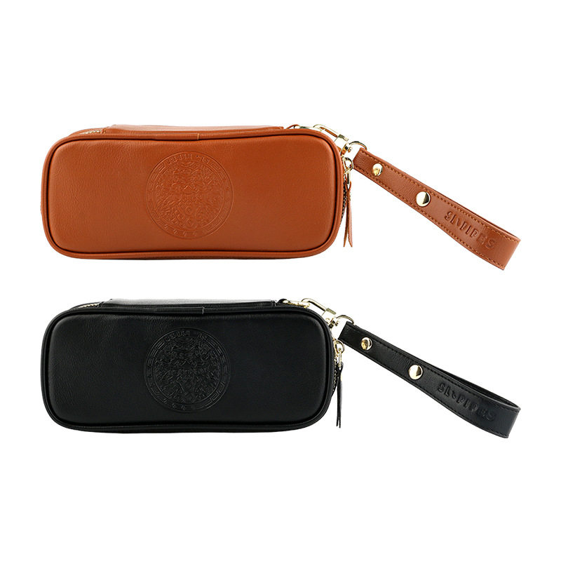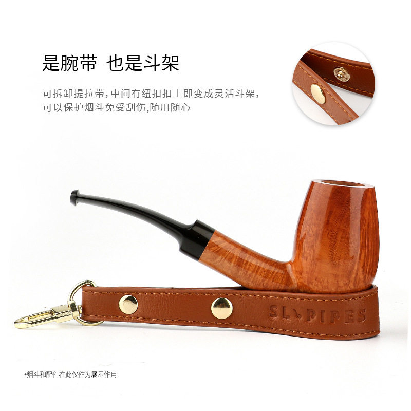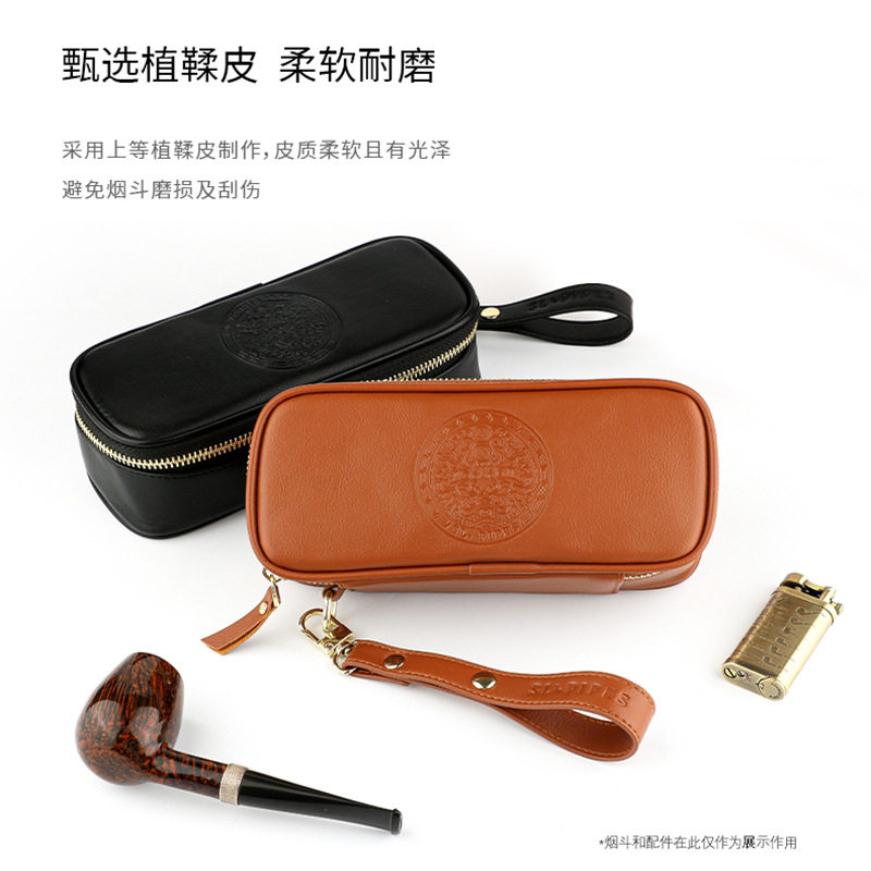 2026新款绍兰SL孟加拉植鞣皮革双斗包腕带简易斗架便捷烟斗收纳包