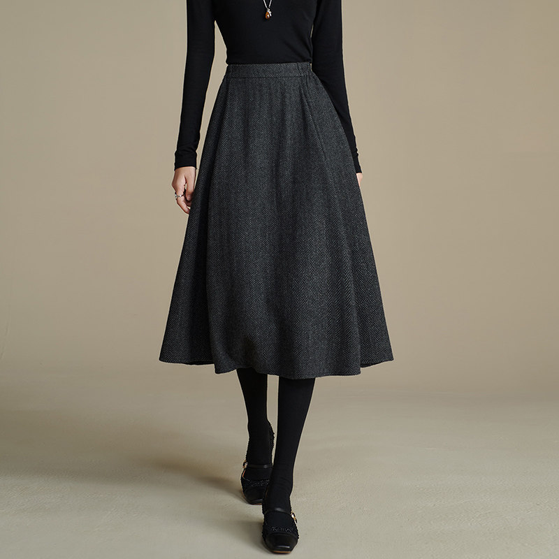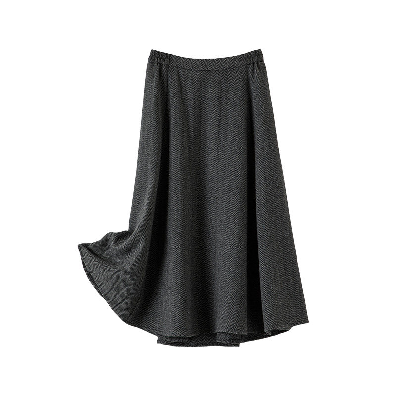 晚白2025年秋冬新款高腰气质绵羊毛宽松亲肤伞裙百搭长裙半身裙