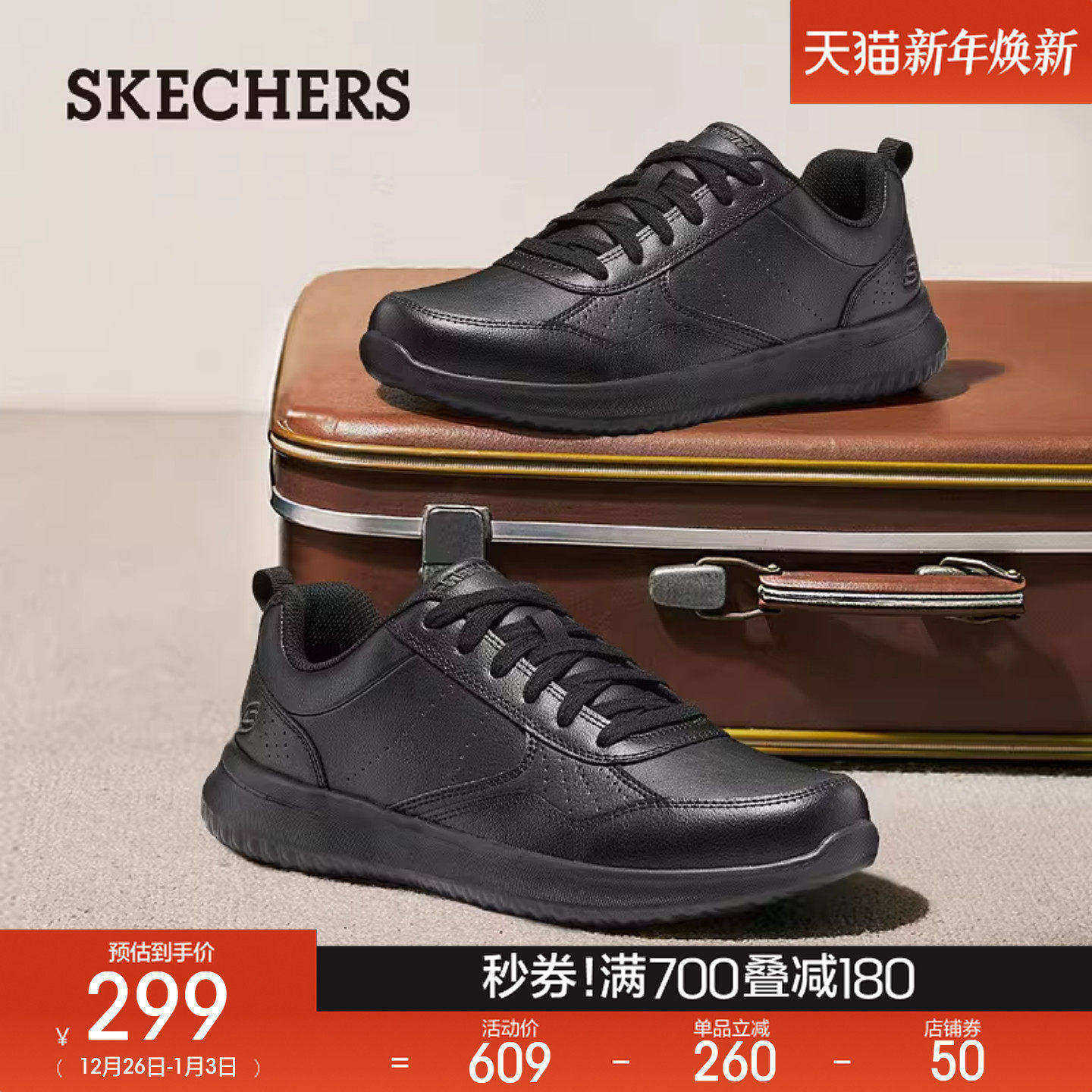 斯凯奇秋冬新款男子舒适休闲皮鞋商务鞋通勤鞋德比鞋软底上班板鞋
