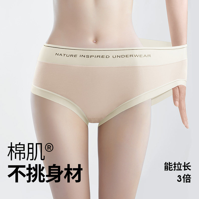 润微茶肌内裤女棉2025新款中腰无痕舒适大码收腹10A抗菌女士三角