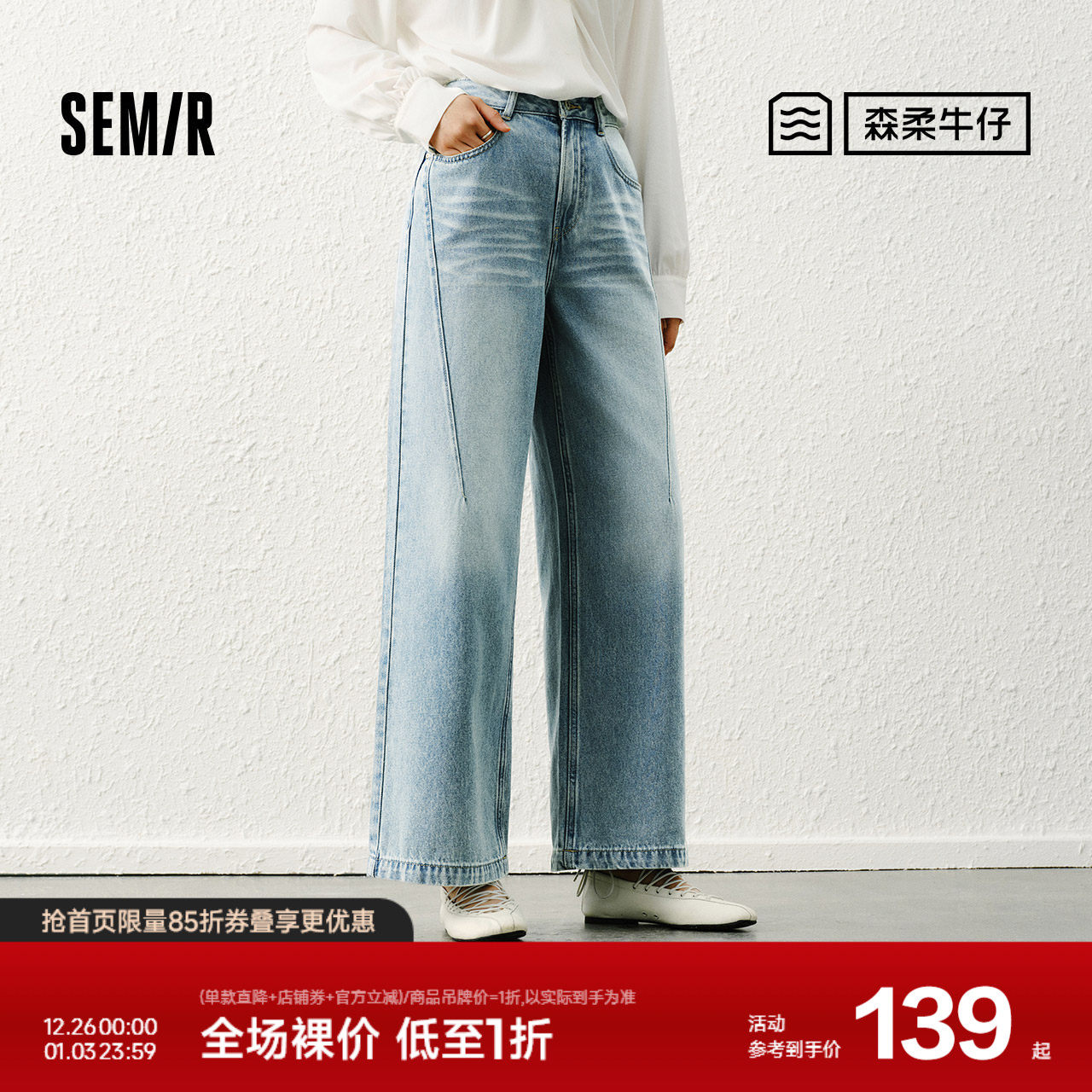 森柔|森马牛仔裤女春季高腰阔腿裤宽松做旧酷飒风显腿长港风长裤
