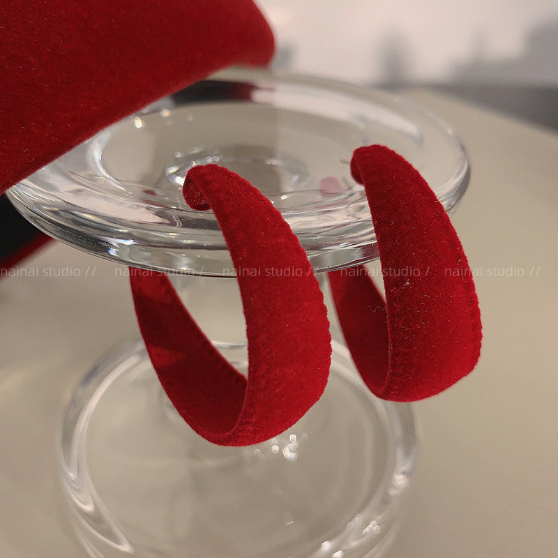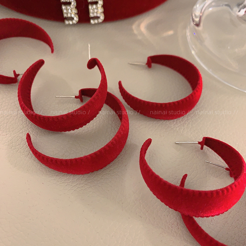 红色植绒耳圈~新年秋冬丝绒复古高级感港风ins小众耳环耳钉耳饰潮