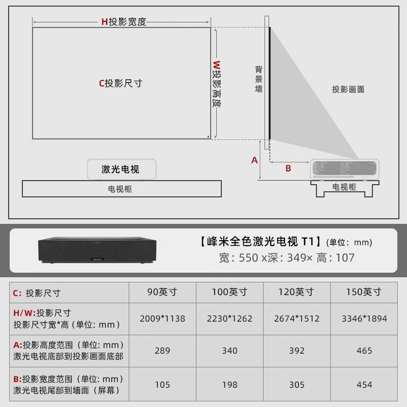 峰米T1激光电视电视机全色超亮激光4K分辨率超高清投影仪家用投影机护眼宝华韦健音响家庭影院