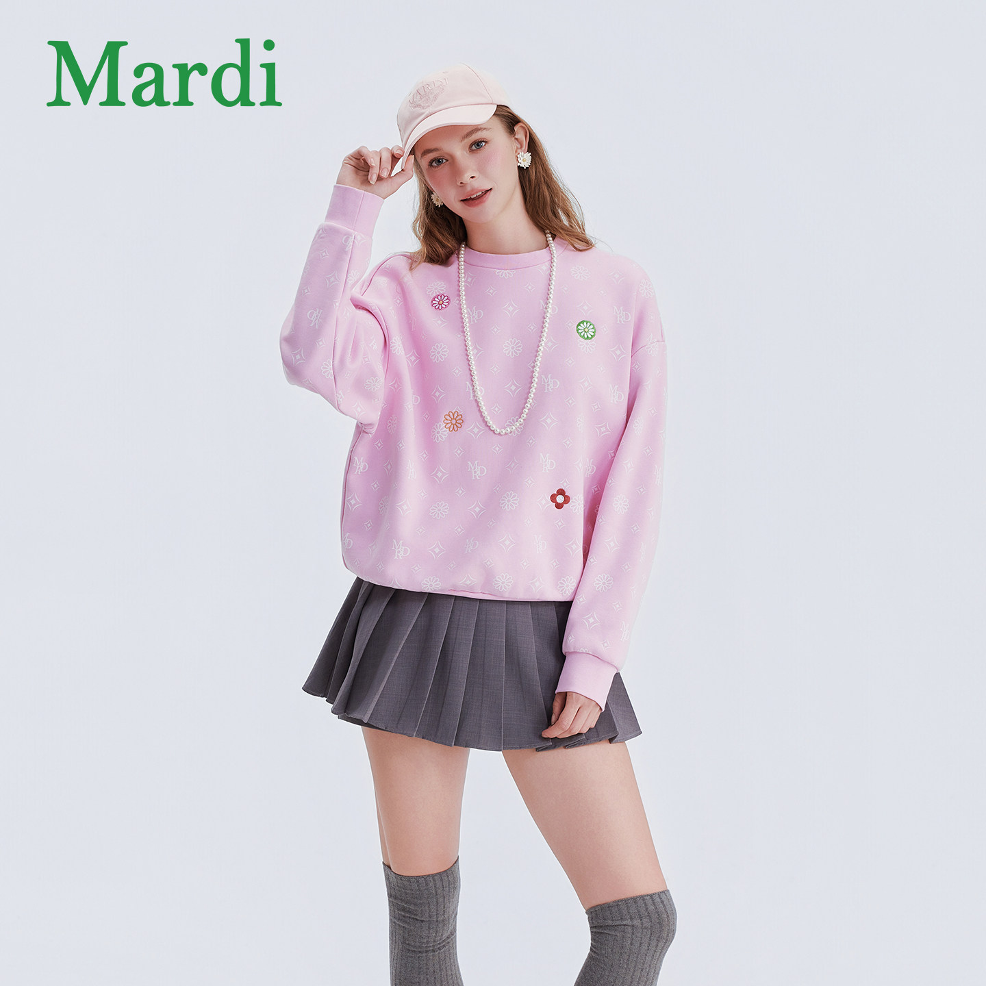 MARDI女装卫衣2025冬季新款女休闲百搭圆领字母印花长袖打底上衣