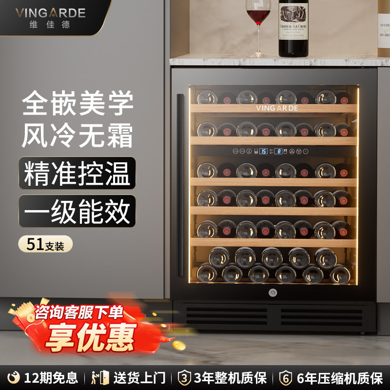 维佳德YC-150SZFF 嵌入式红酒柜家用恒温恒湿酒柜家用冷藏柜冰吧