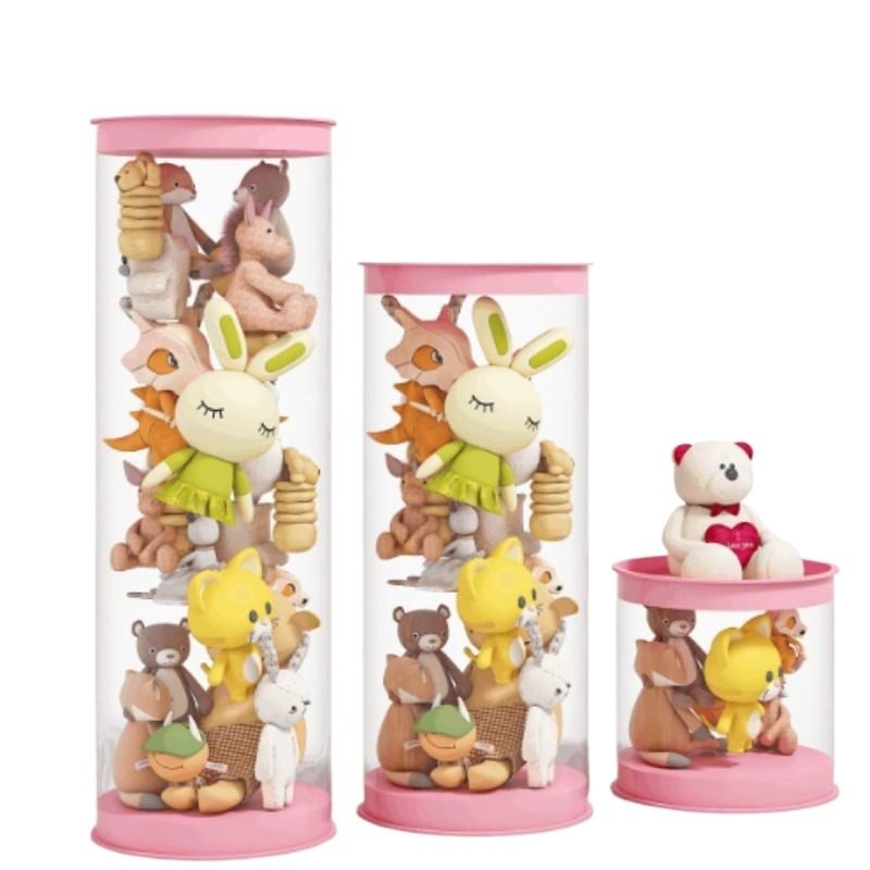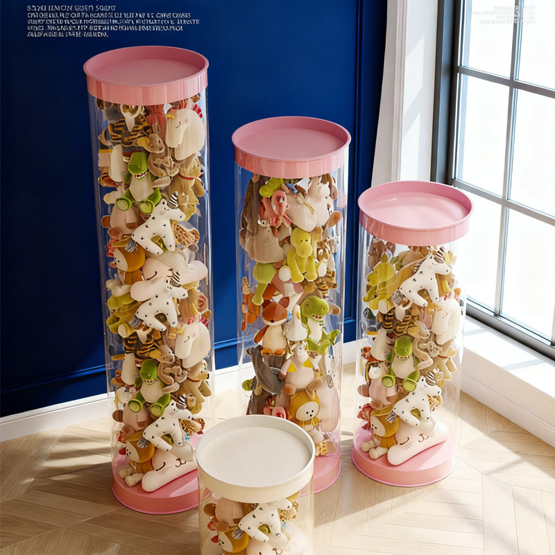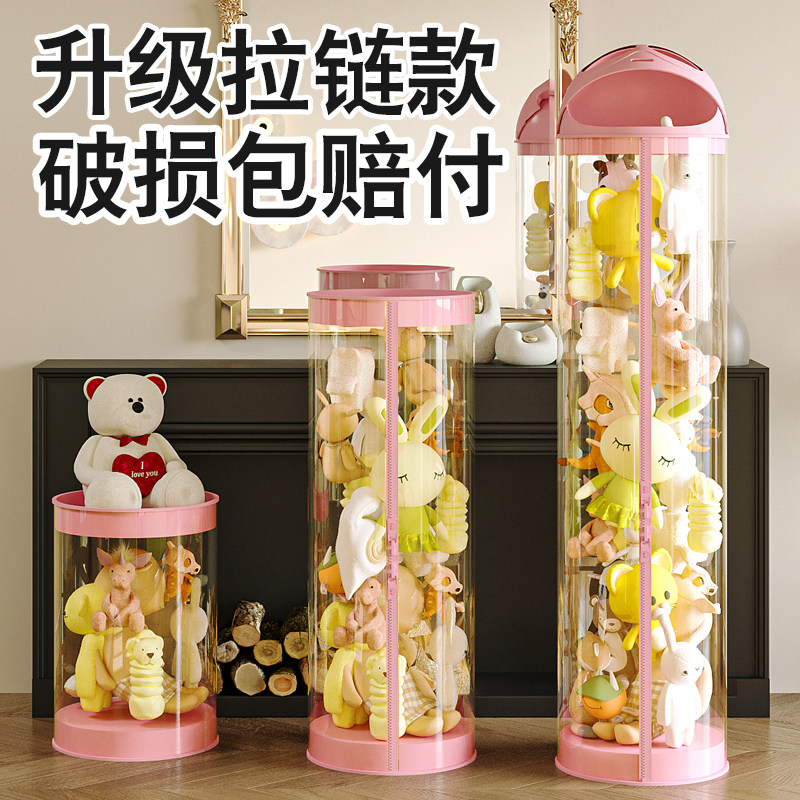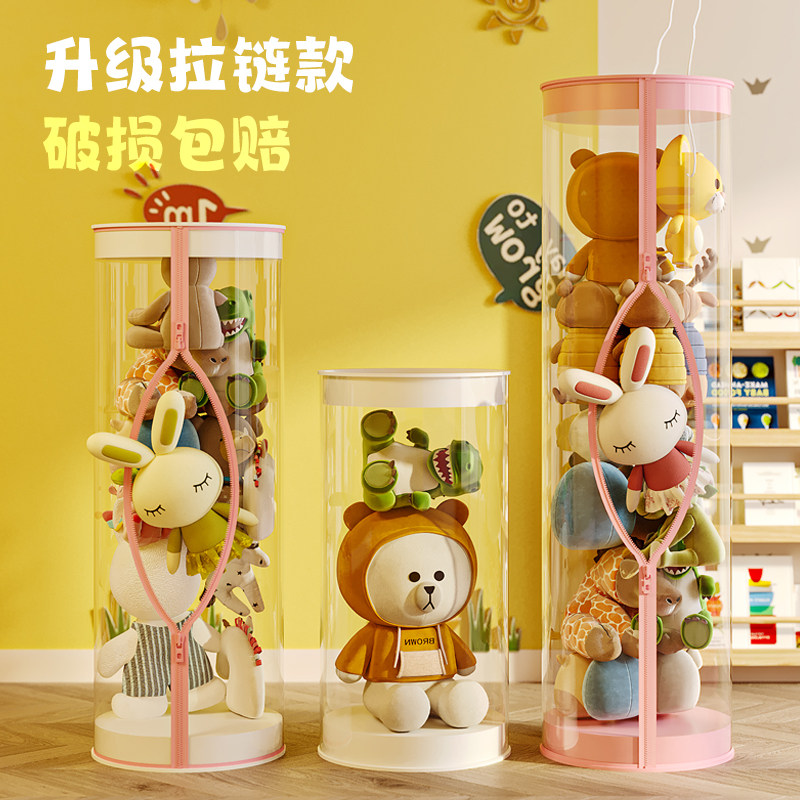 娃娃收纳桶透明防尘圆柱儿童玩具收纳箱子布偶收纳筐公仔收纳神器