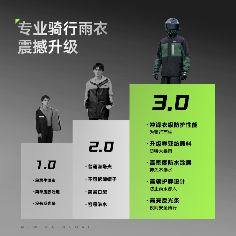专业骑行雨衣,三合一冲锋衣面料,分体式