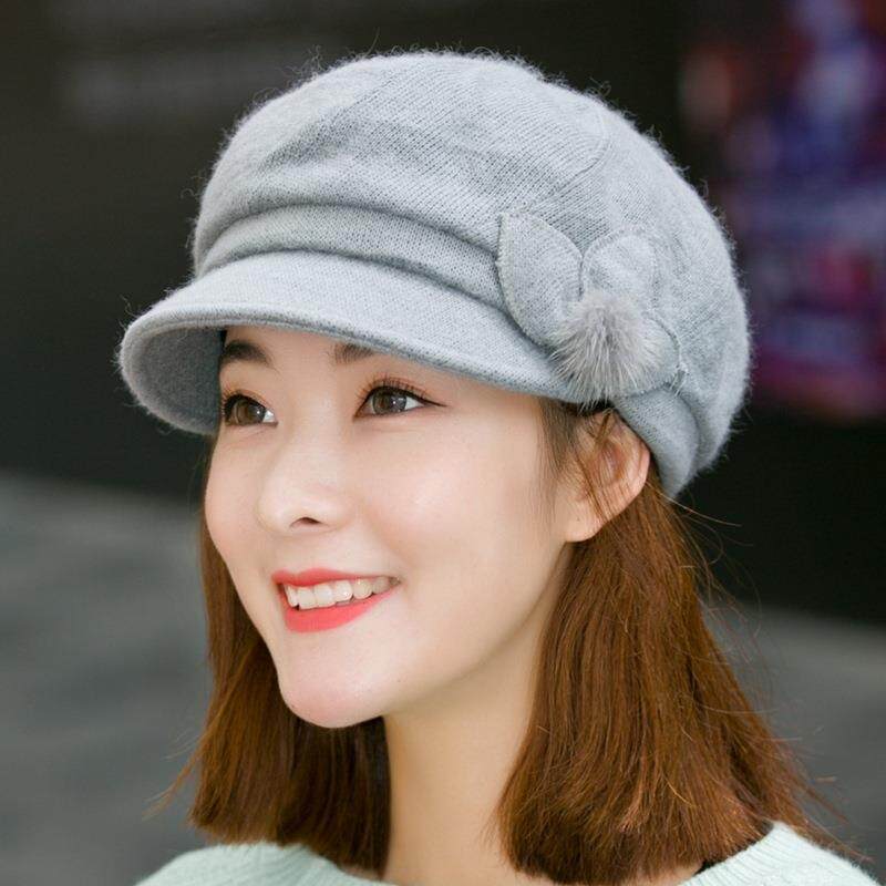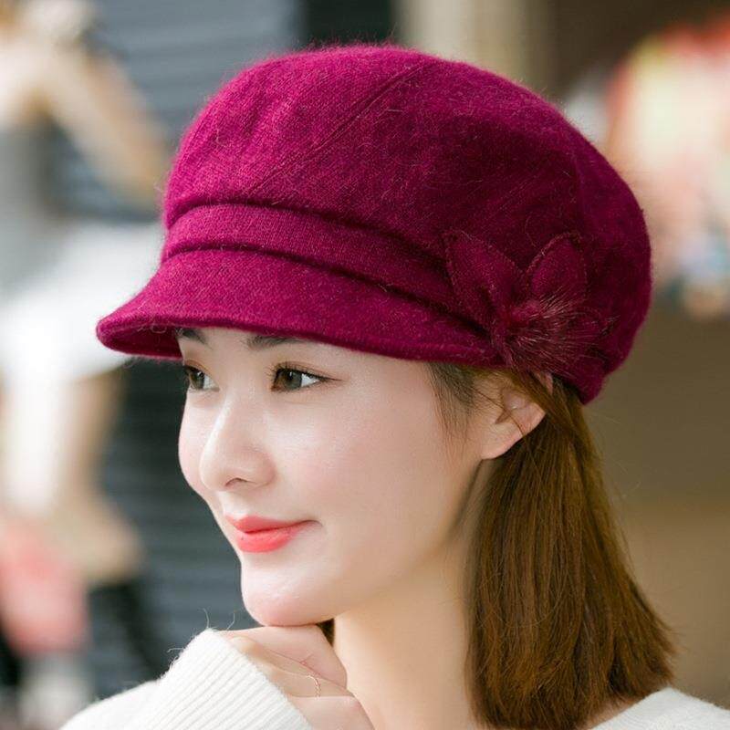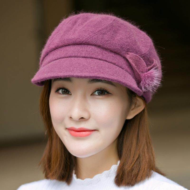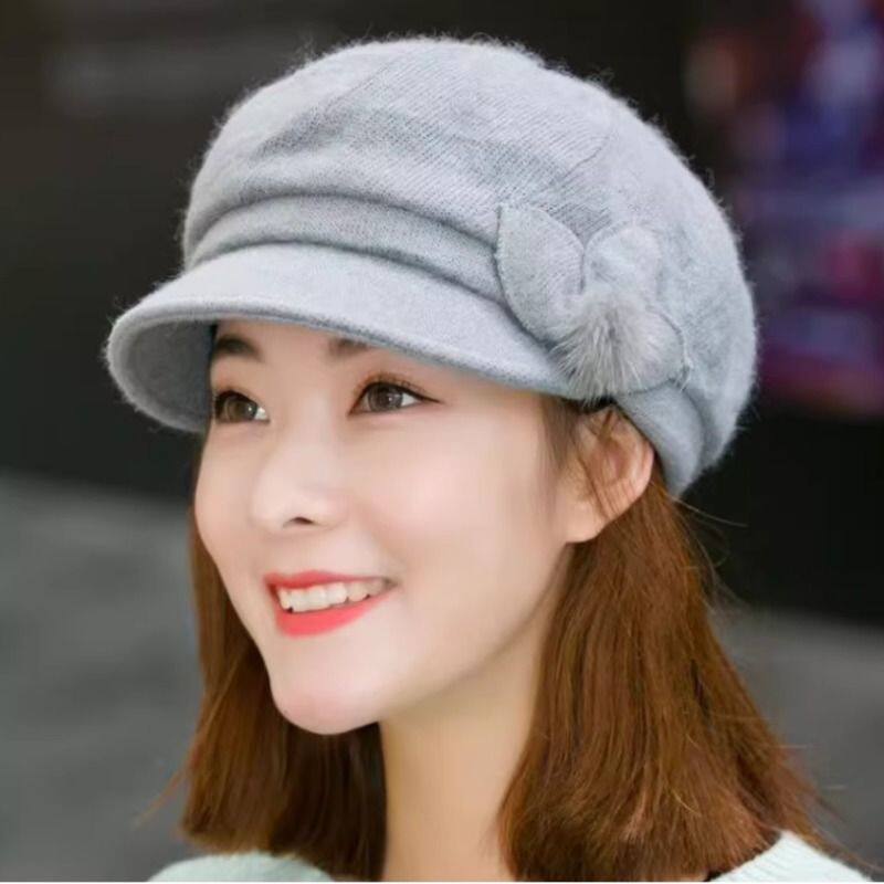 帽子女秋冬季羊毛贝雷帽时尚保暖淑女帽鸭舌兔毛帽针织毛线帽加绒