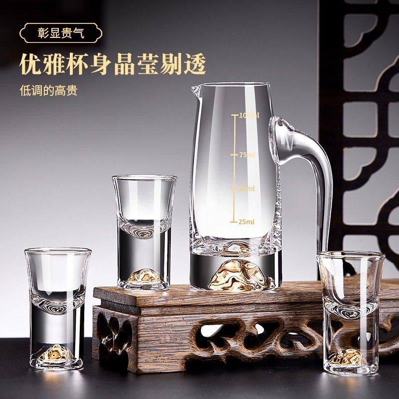 青苹果家用白酒杯套装高档酒杯金箔水晶玻璃酒具烈酒杯壶精致刻度