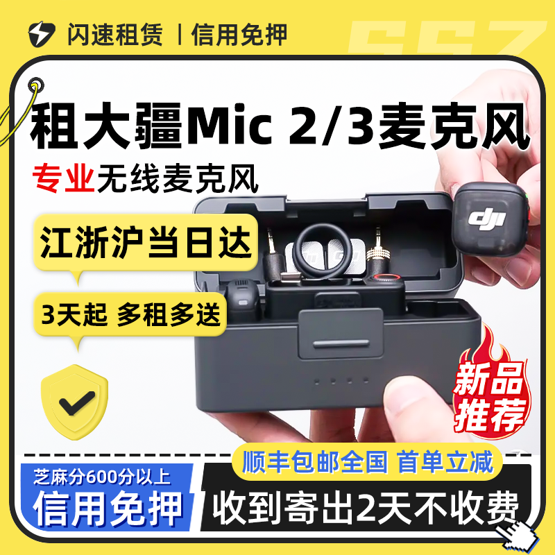 出租DJI大疆Mic 2/3专业领夹无线麦克风直播降噪外接租赁套装