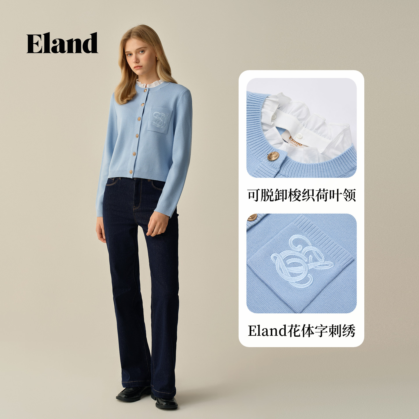 Eland衣恋毛针织衫女长袖舒适保暖开衫毛衣2025冬季新款