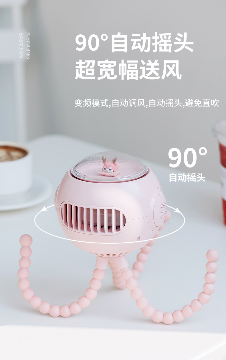 BLINBLIN婴儿手推车小风扇八爪鱼便携夹子式usb充电夜灯放音乐户外小孩床头儿童宝宝婴儿床无叶溜娃神器