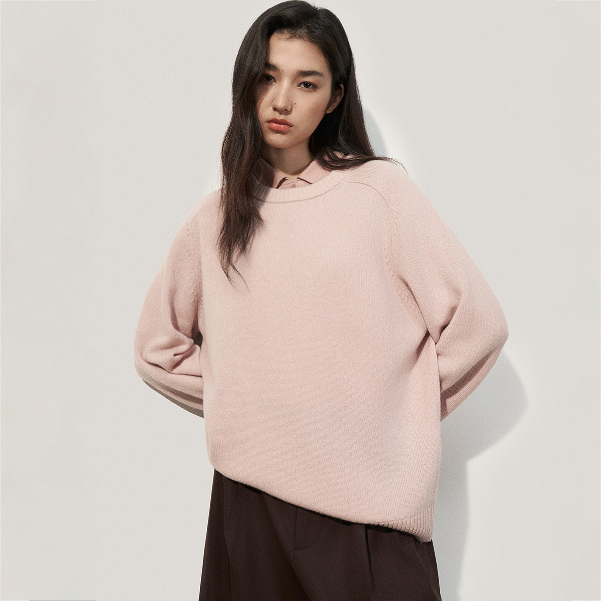 OCHIRLY欧时力 牦牛绒羊毛针织毛衣女圆领宽松外穿春款