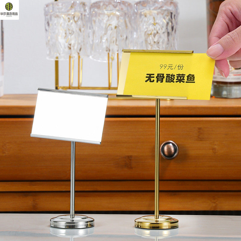 餐厅不锈钢餐牌架台卡架q自助餐菜牌夹菜品价格展示牌立式桌号牌