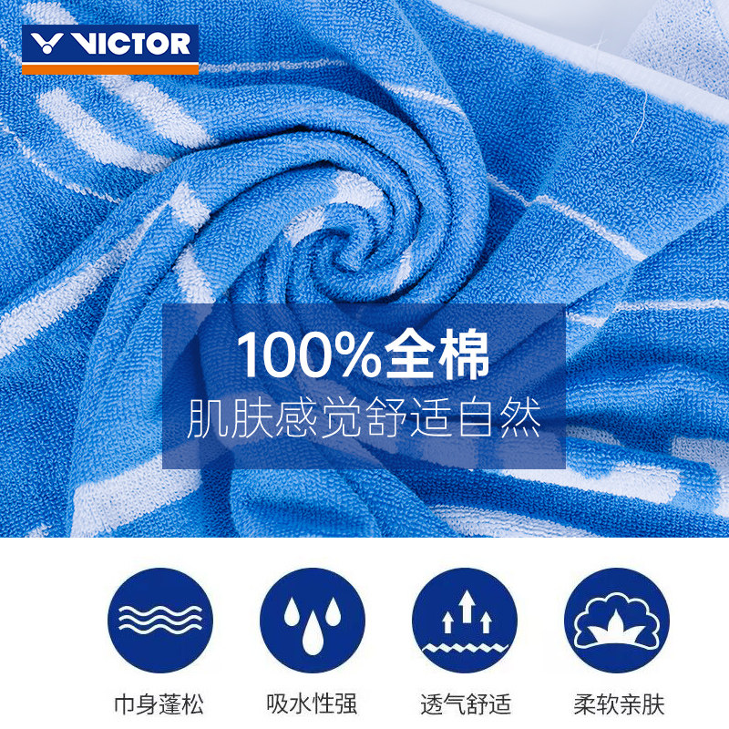 VICTOR羽毛球运动毛巾威克多胜利吸汗排湿专用纯棉冰感长毛巾大号