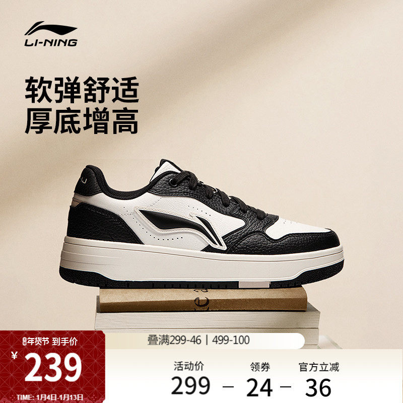 李宁小白鞋 |板鞋女鞋休闲鞋秋季轻便软底舒适百搭鞋子增高运动鞋