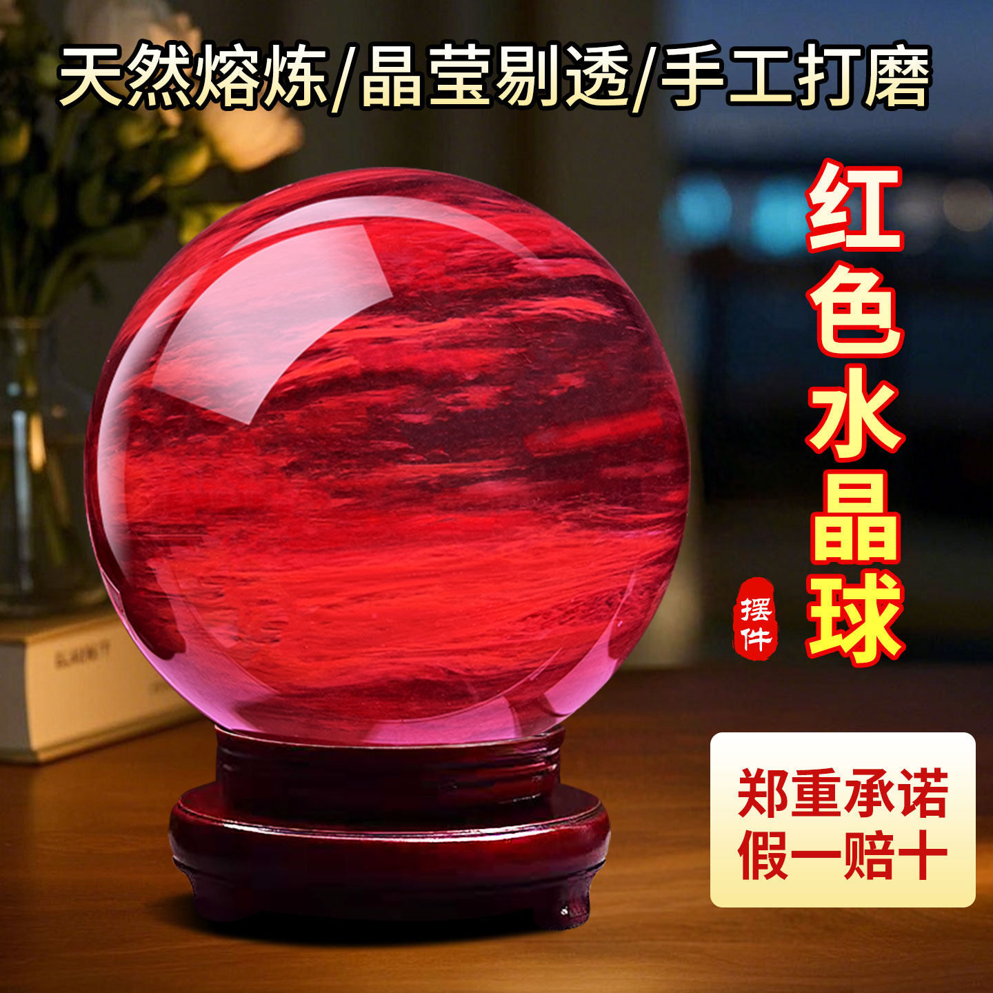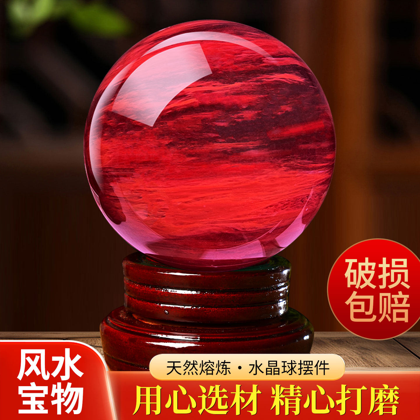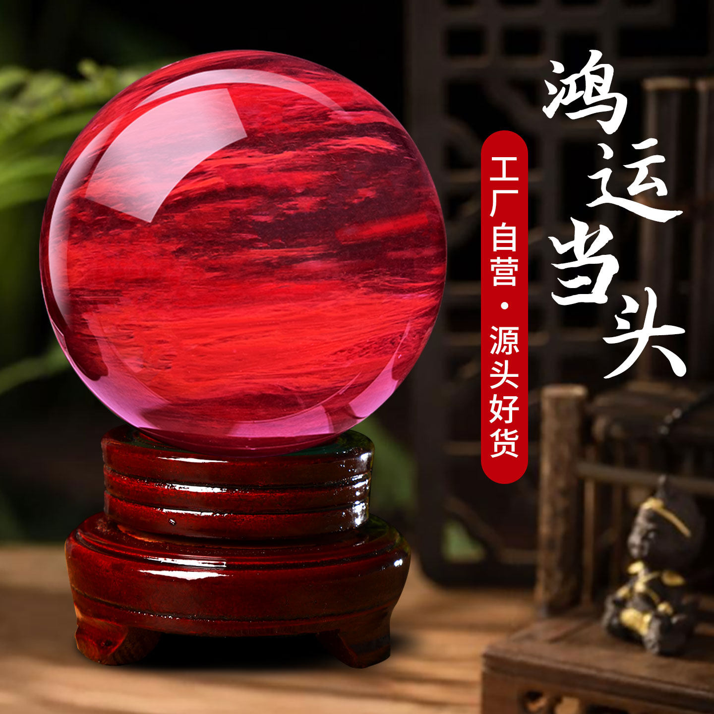 红色水晶球原矿石风生水起开业乔迁办公装饰桌面摆件红水晶水球