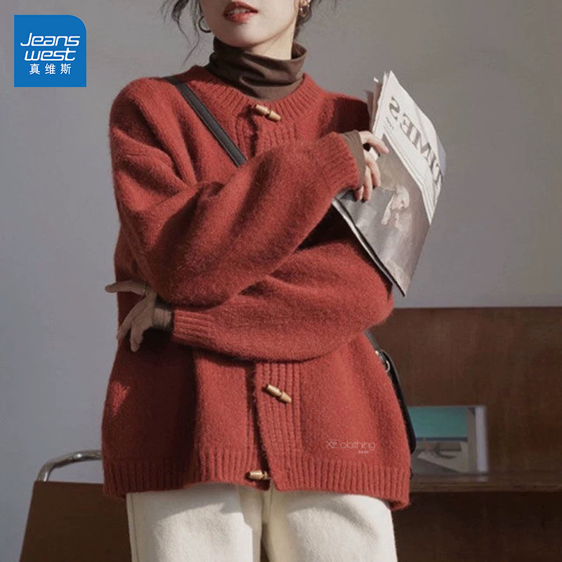 GL真维斯针织开衫女2025新款秋冬季高级感韩版宽松慵懒风毛衣外套