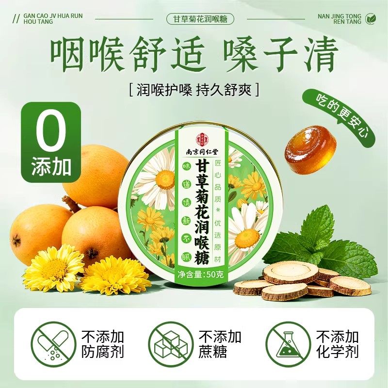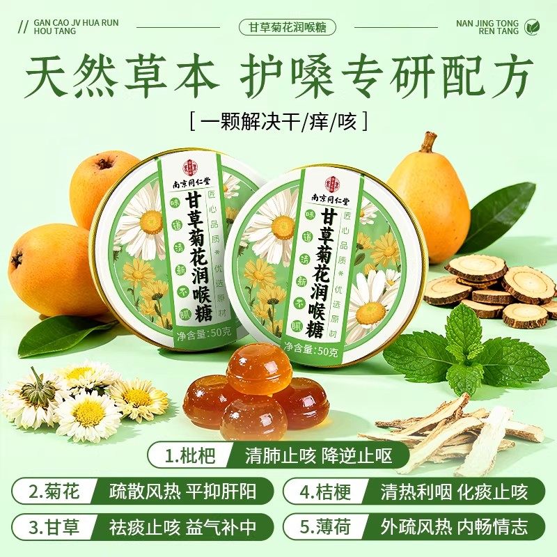 南京同仁堂润喉糖清润肺化痰止咳护嗓教师薄荷口气清新硬糖果零食