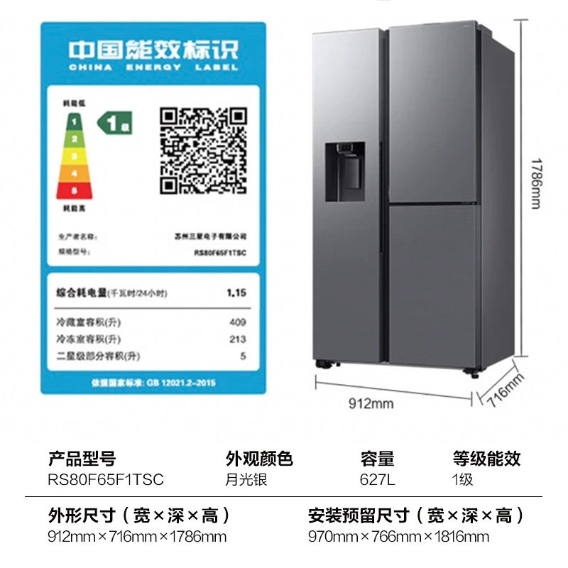 三星AI神5系Plus冰箱双开门大容量627L制冰自动开门T型门银色F1TS