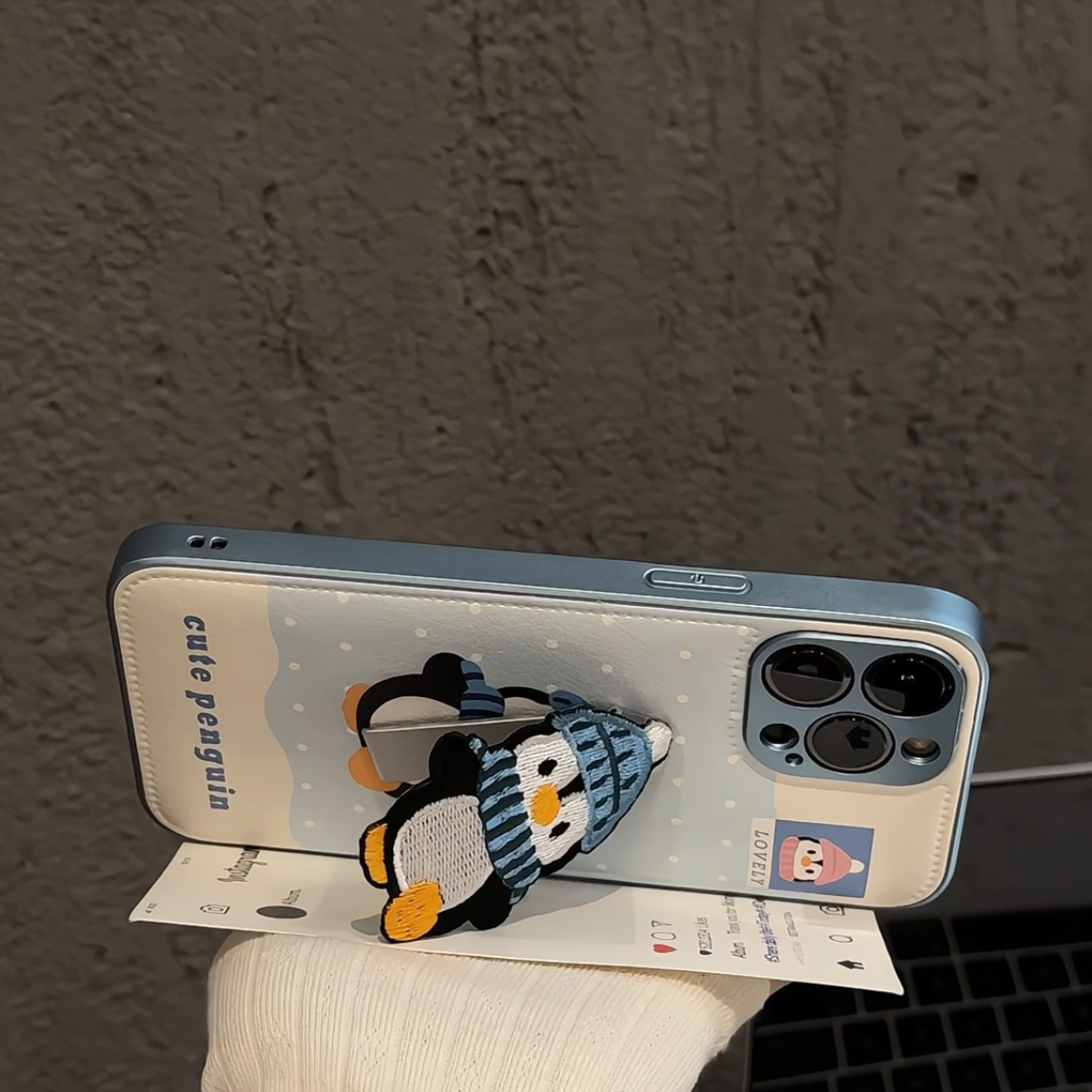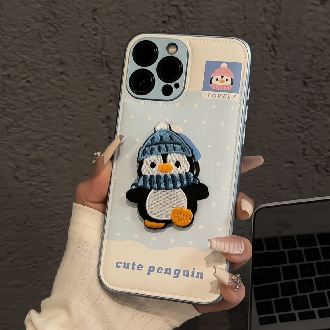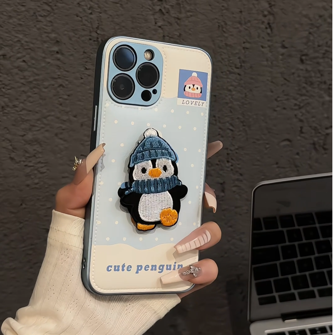 波点企鹅金属直边皮纹鼓包适用苹果16pro手机壳iphone15风小众华为p60全包mate60保护套红米小米14