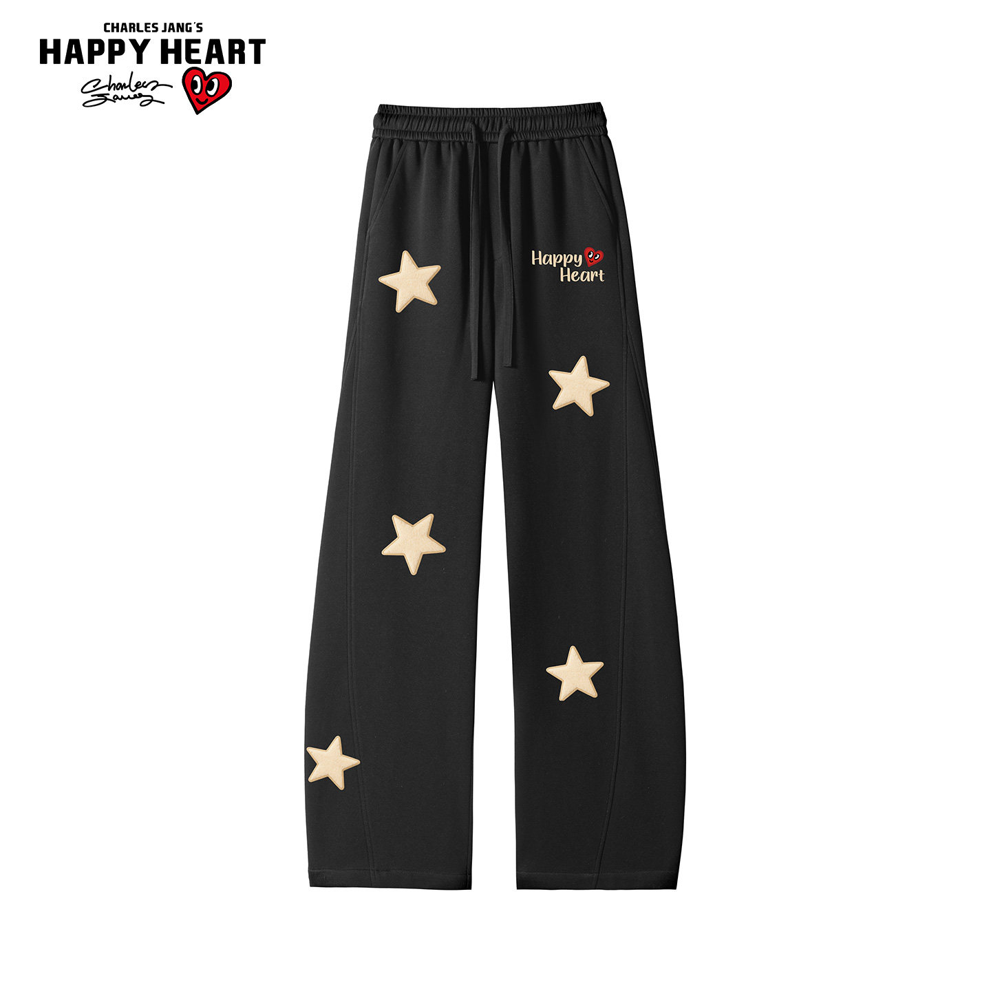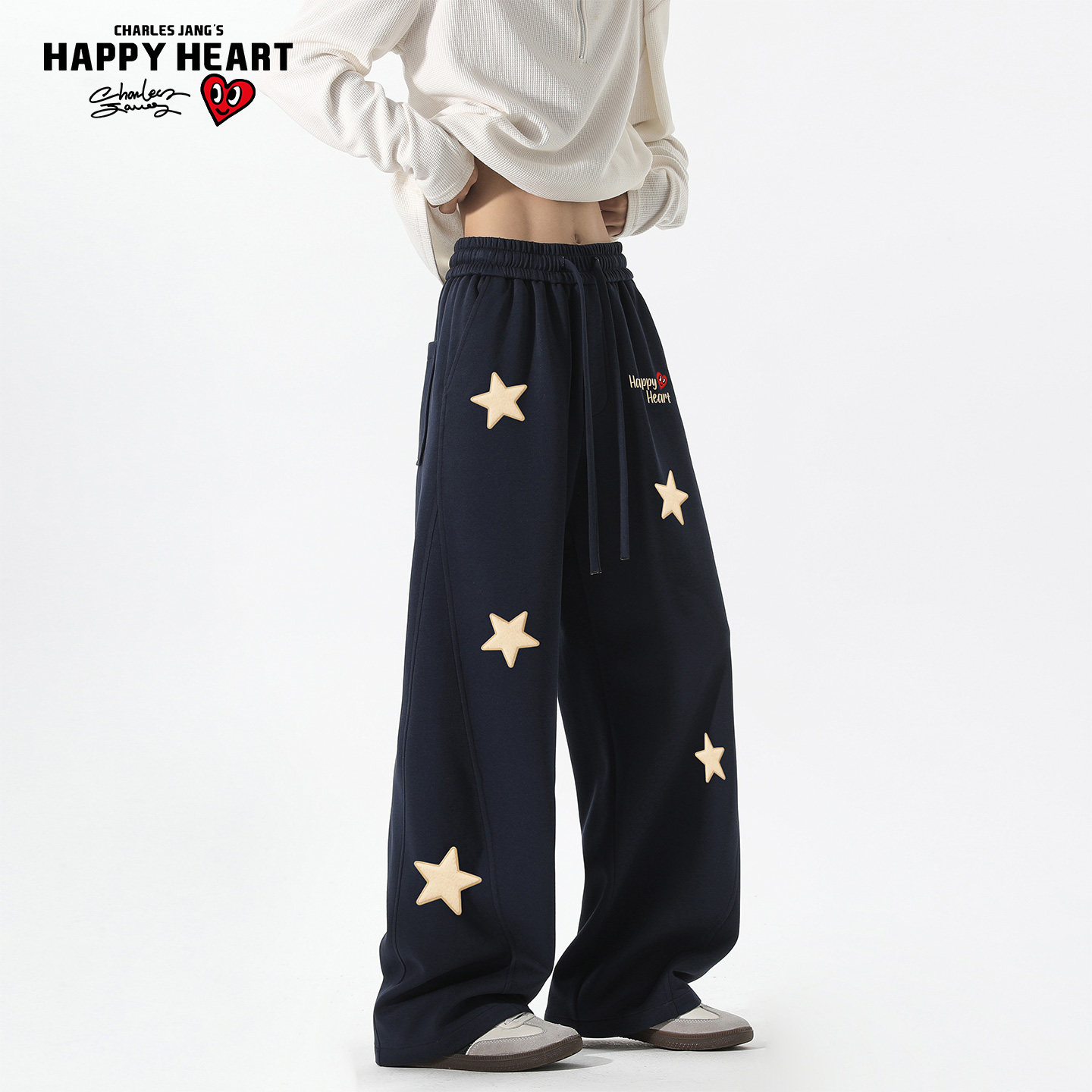 查尔斯桃心 星星印花弯刀休闲裤男女春秋季宽松阔腿新款情侣长裤