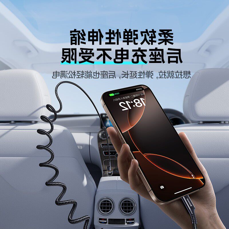 车载carplay弹簧伸缩数据线适用苹果iPhone16充电线iPhone15promax汽车机车usb转typec快充专用