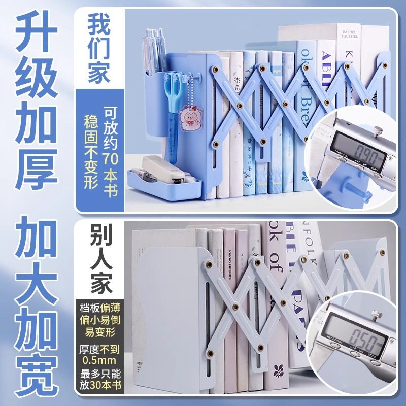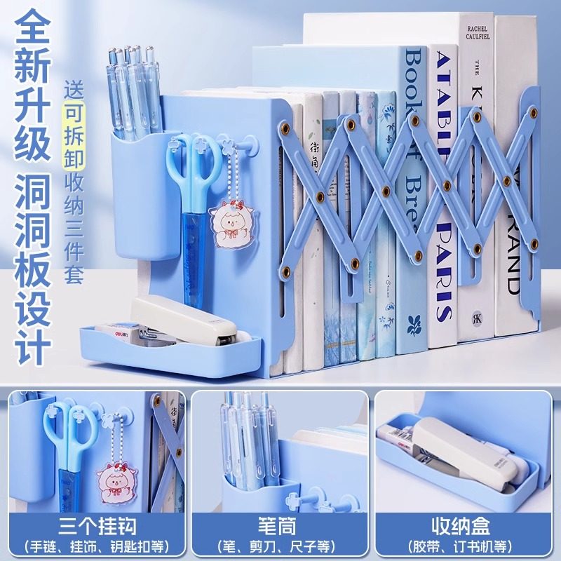 友德乐可伸缩书立带笔筒书架桌面一体书本折叠固定书本收纳架高中生挡板书夹书档立架学生用桌上收缩立书架