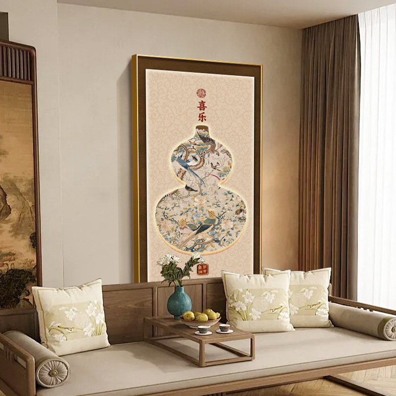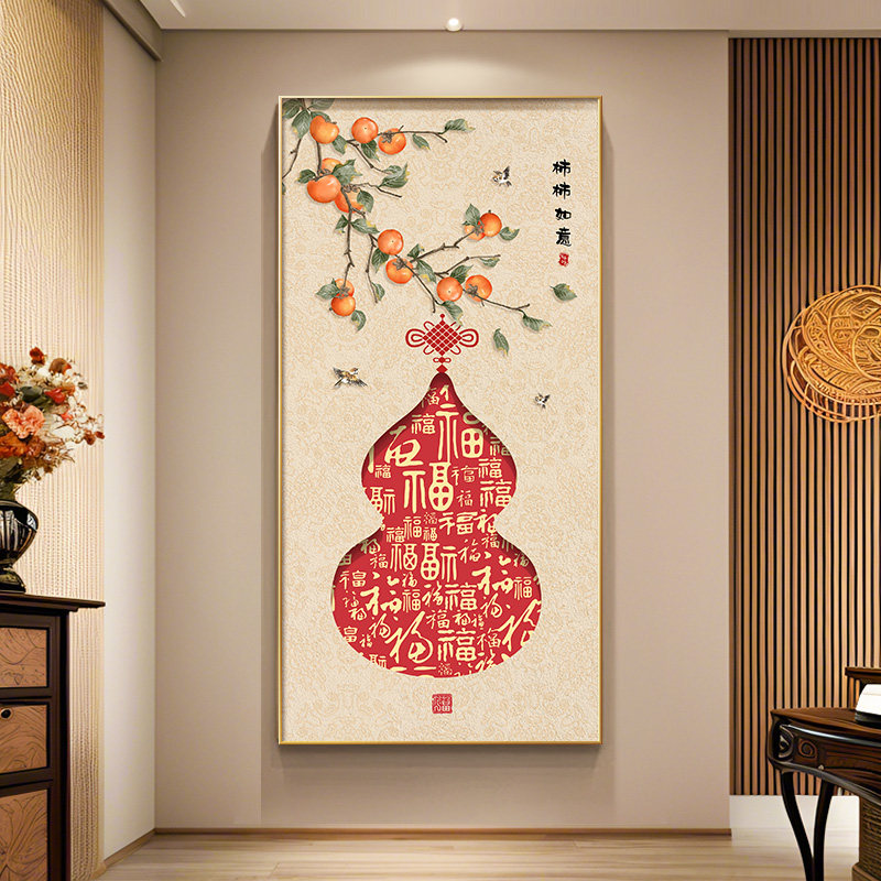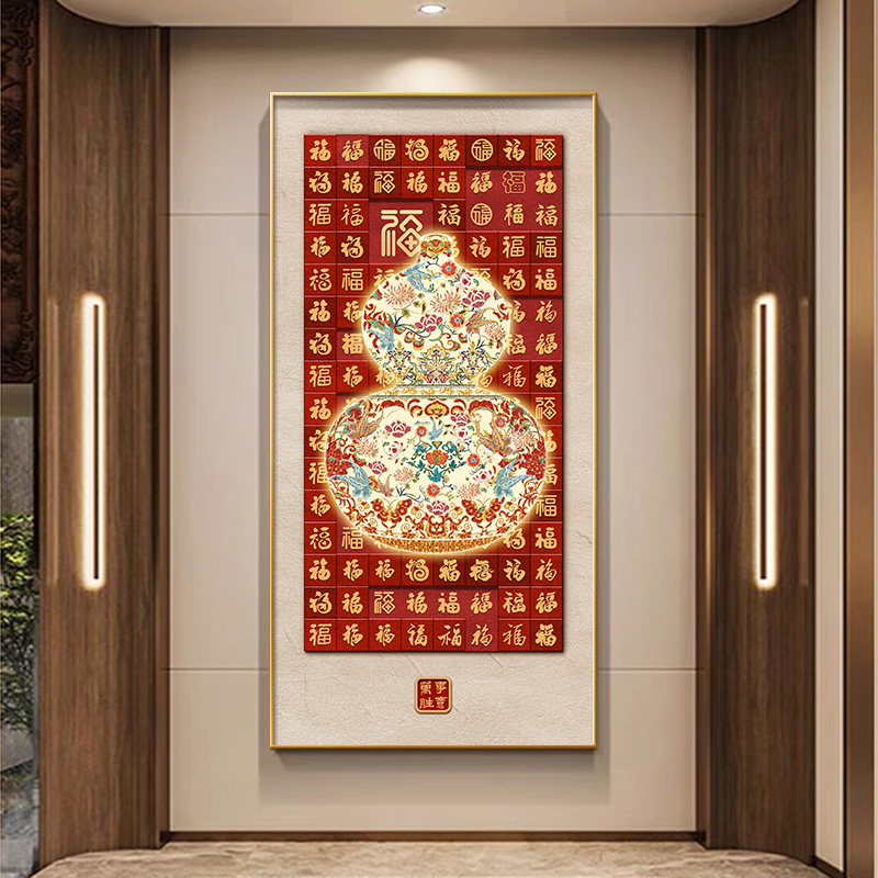 新中式玄关装饰画寓意好葫芦挂画百福图走廊尽头壁画入户门挂画
